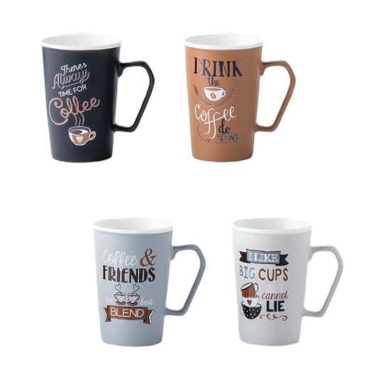 Introducing our delightful set of four mugs crafted from premium new bone China material, designed to bring a touch of positivity to your daily routine. Each mug is adorned with uplifting memes in four sophisticated color variations: light grey, dark grey, chocolate, and black.