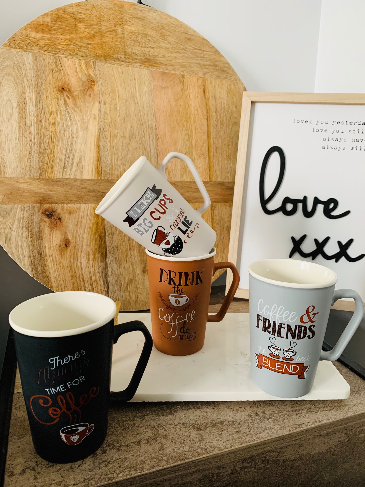 With their sleek and modern aesthetic, these mugs add a stylish flair to any kitchen or dining table. Whether you’re sipping your favorite beverage alone or sharing a moment with loved ones, these mugs are sure to brighten your day and spread positivity with every sip.