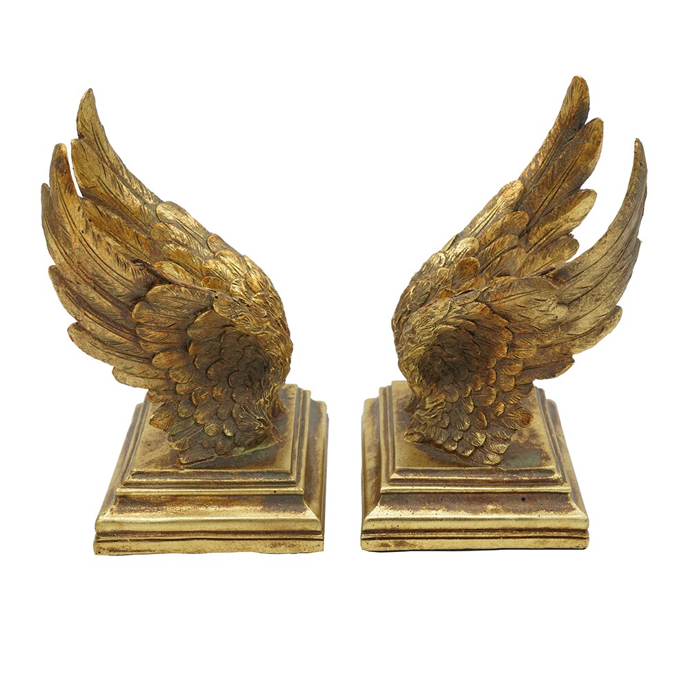 Antique Gold Angel Wings Bookends Set of 2 – Luxe Home Decor