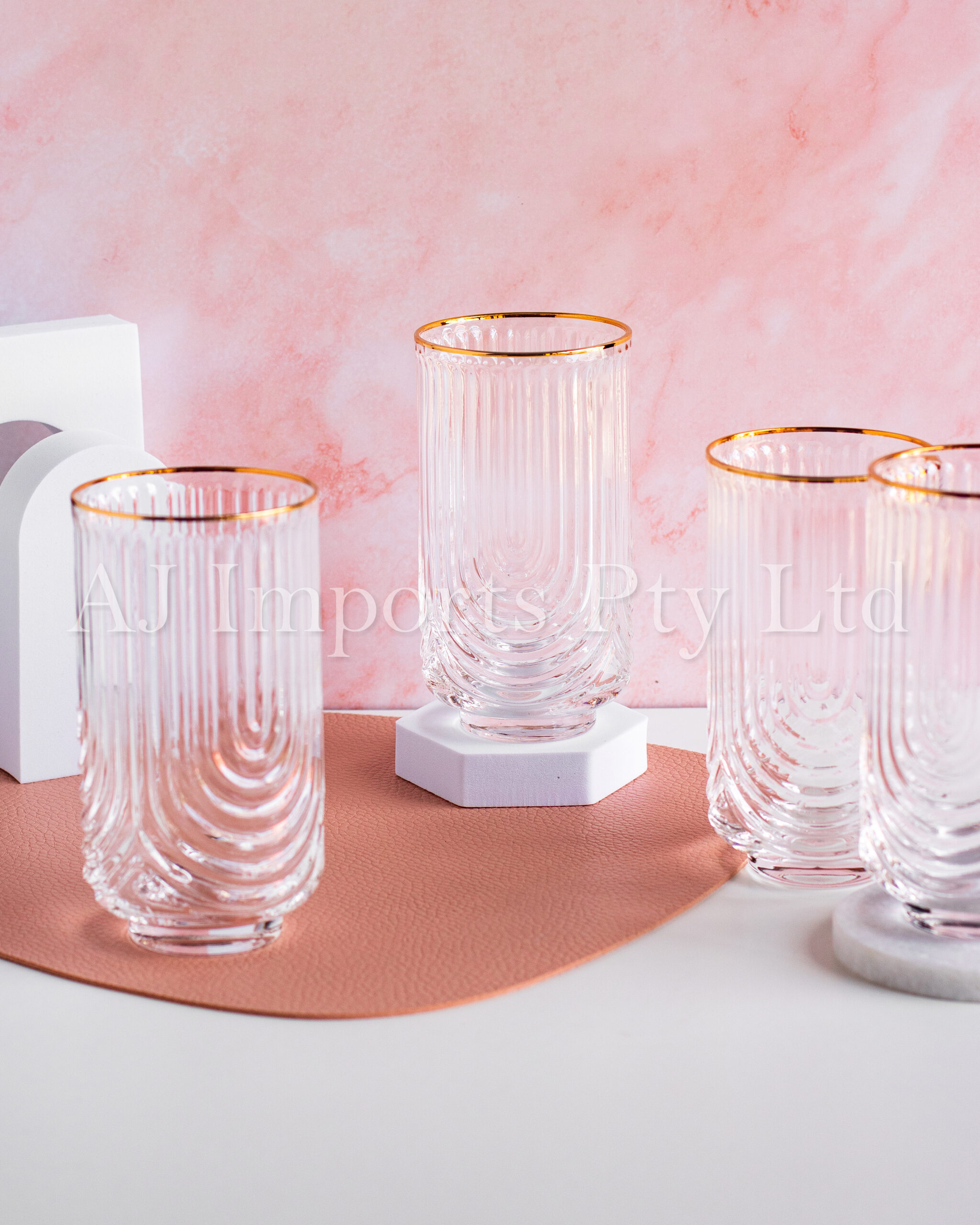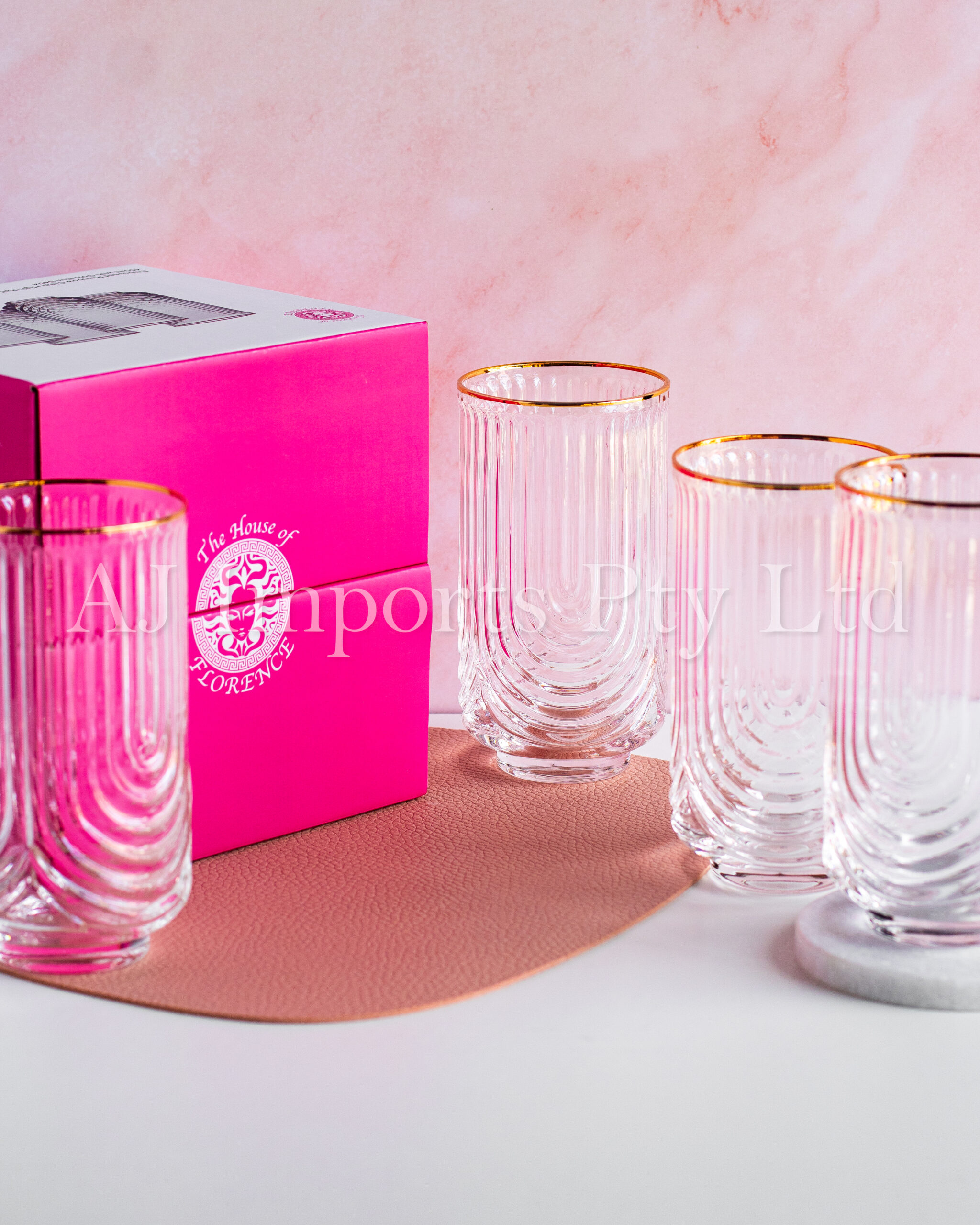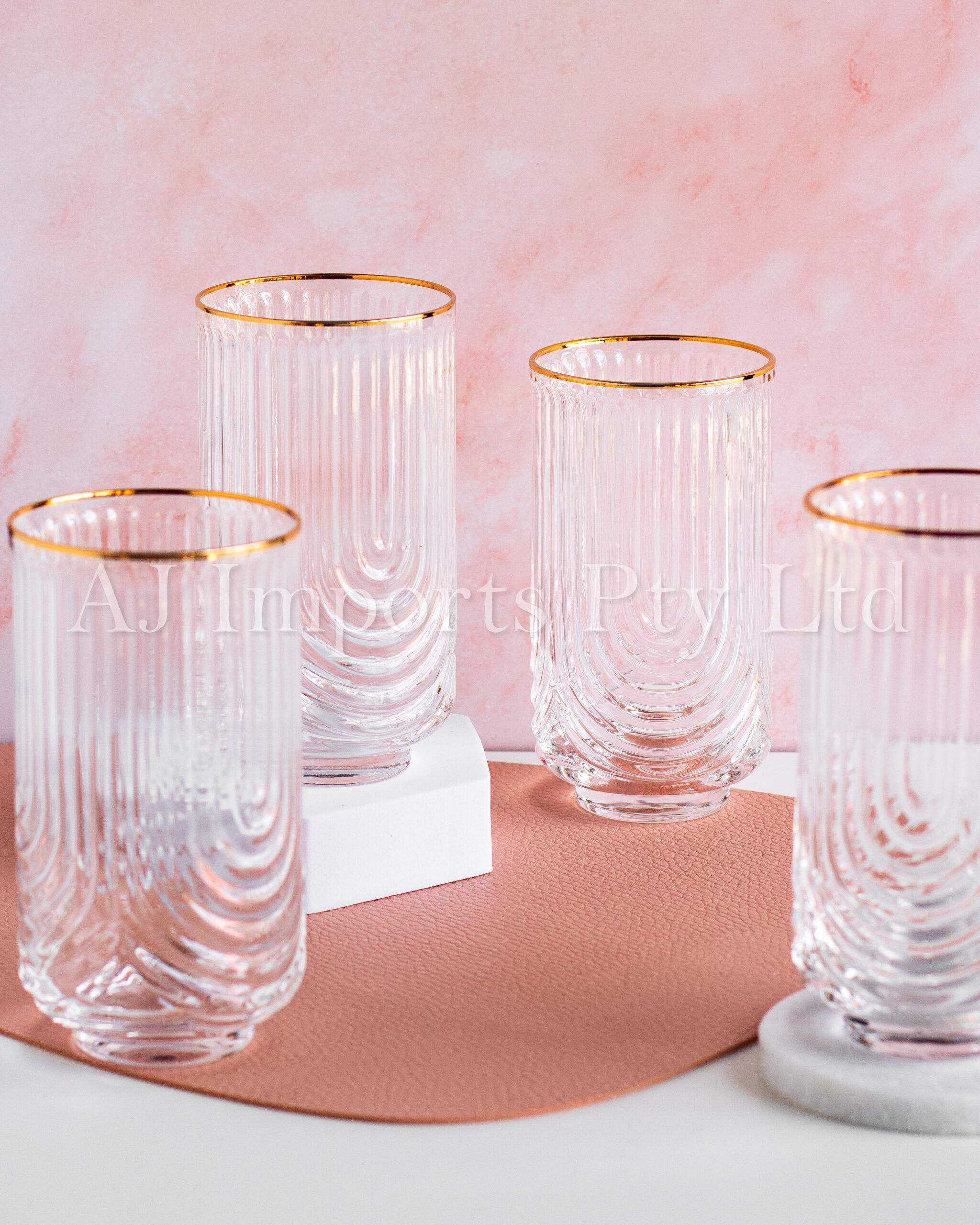 Crafted with impeccable attention to detail, these glasses feature a sleek, footed base that adds a touch of elegance to any table setting. The luxurious gold rim adds a hint of extravagance, elevating your drinking experience to new heights of sophistication.
