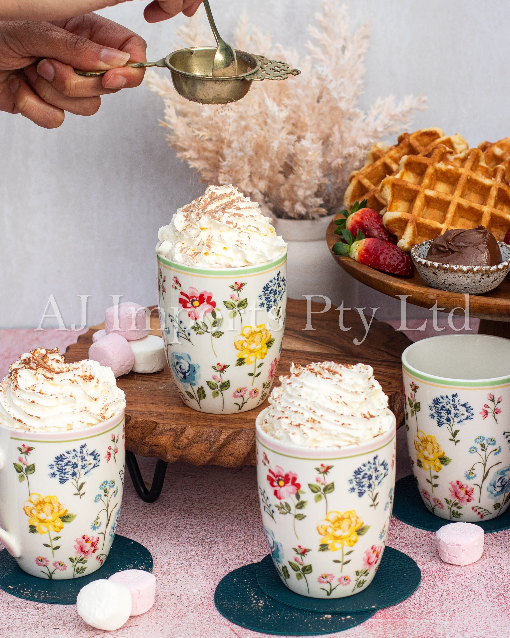Upgrade your drinkware collection with our Bone China Pretty Floral Pattern Mug Set and transform your daily rituals into moments of pure delight and sophistication.