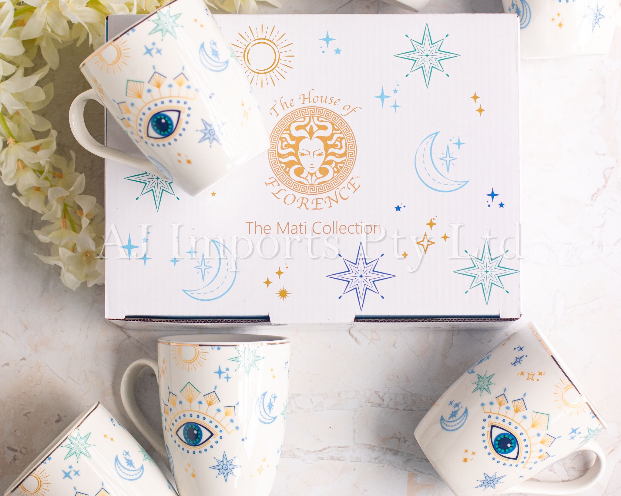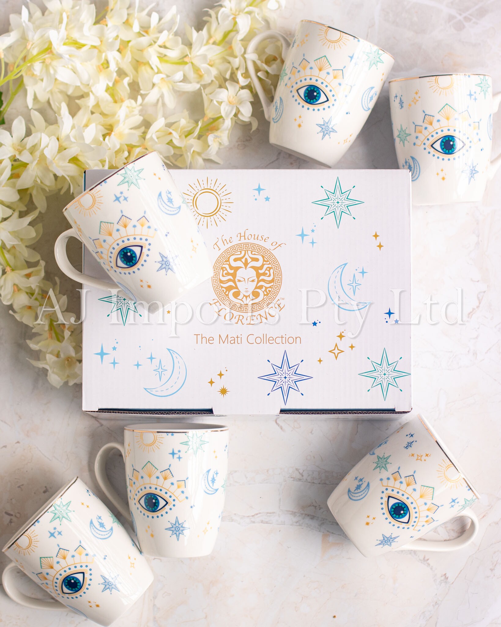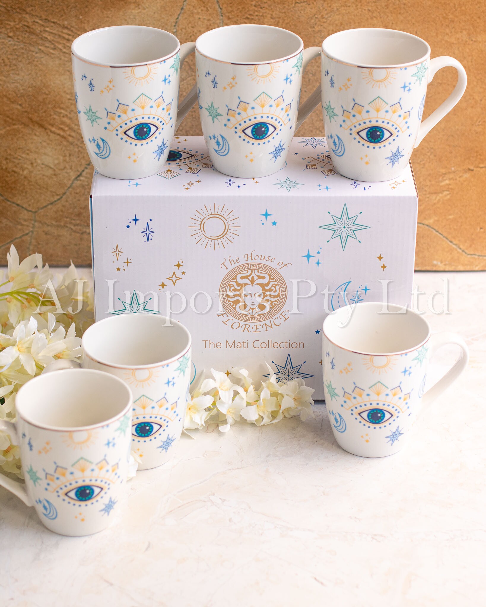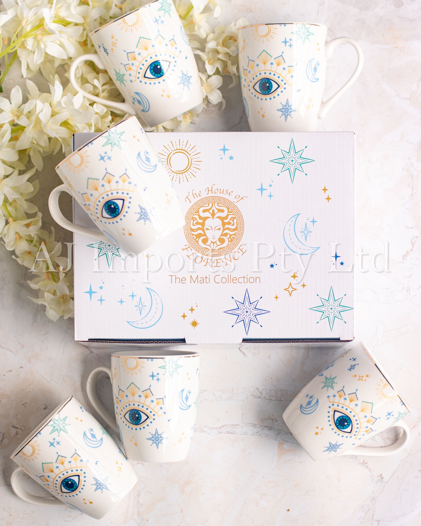 Celestial Eye Design Set of 6 Mugs – New Bone China