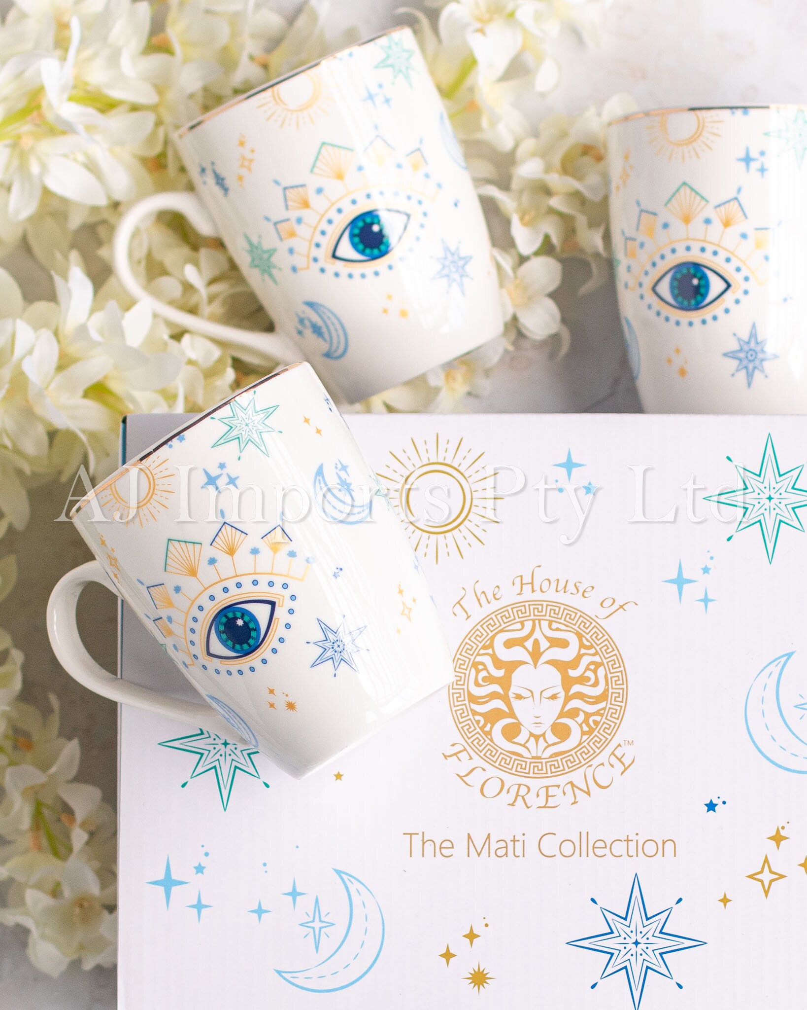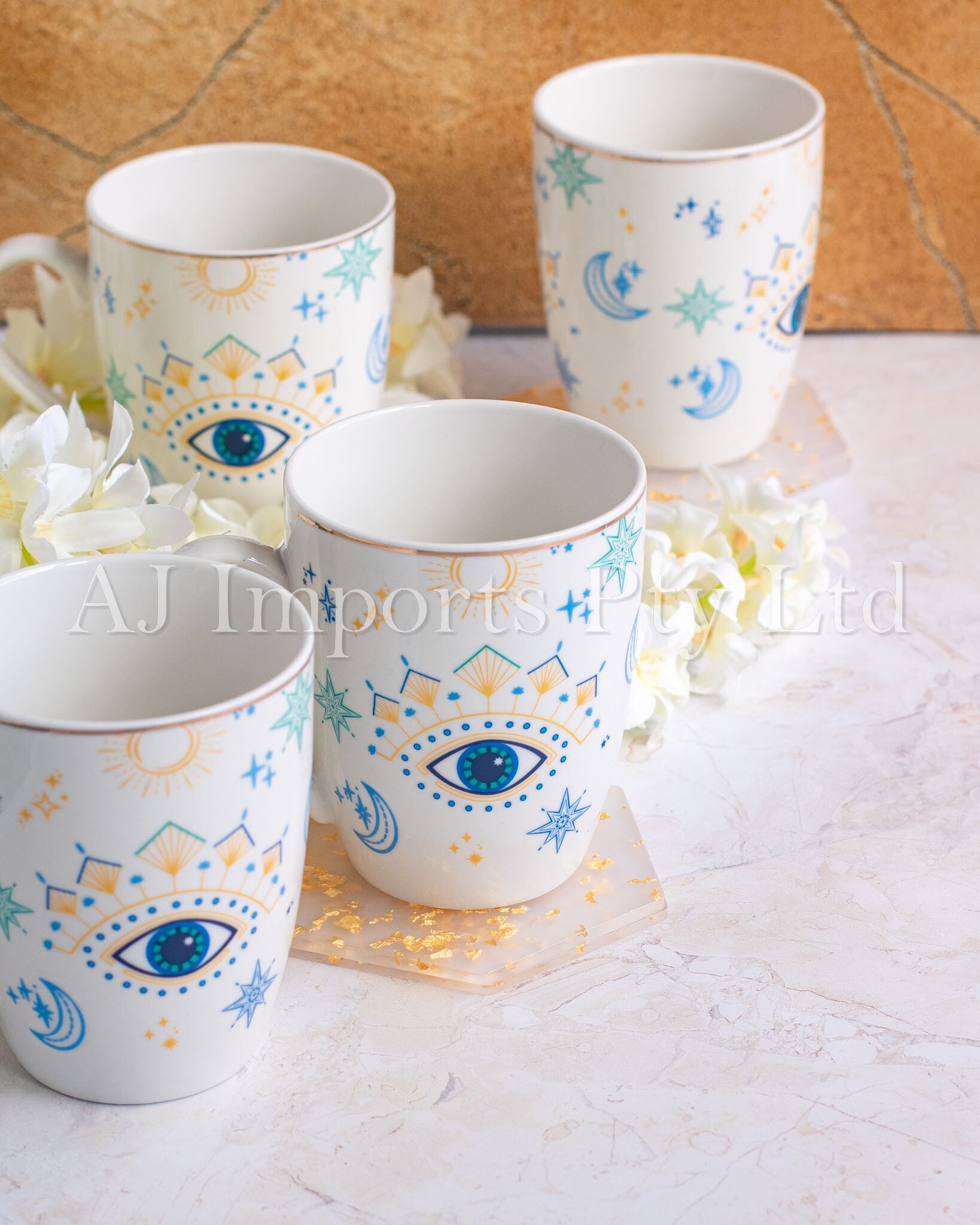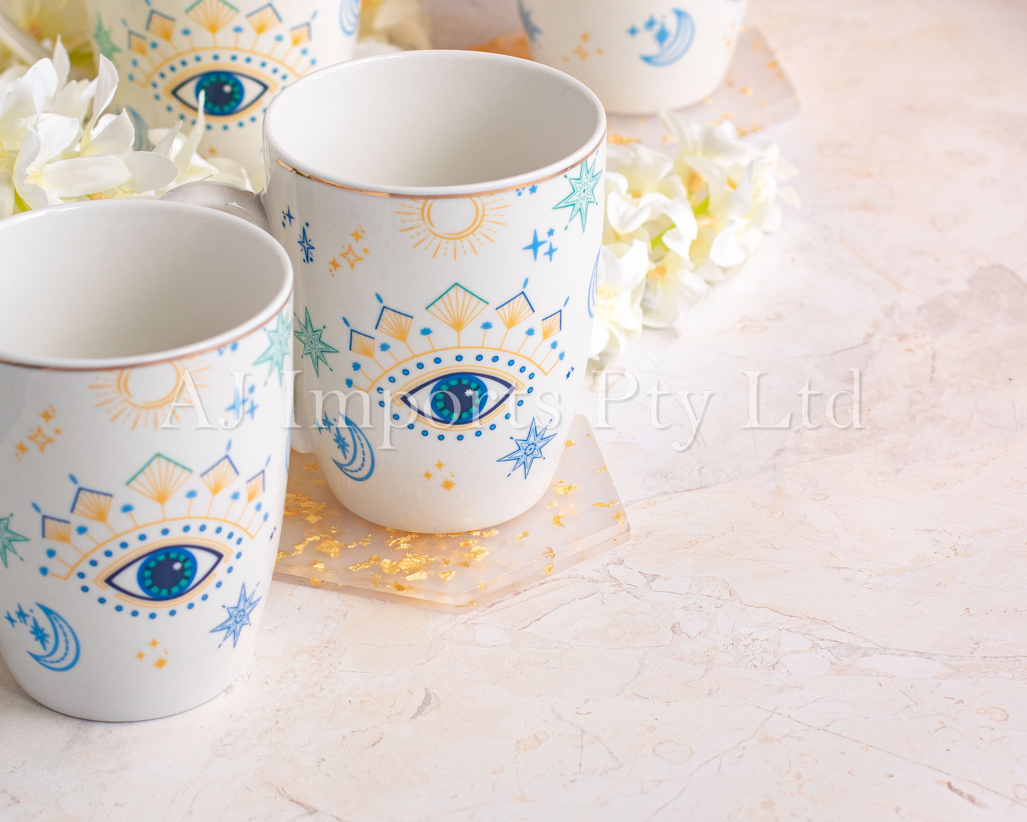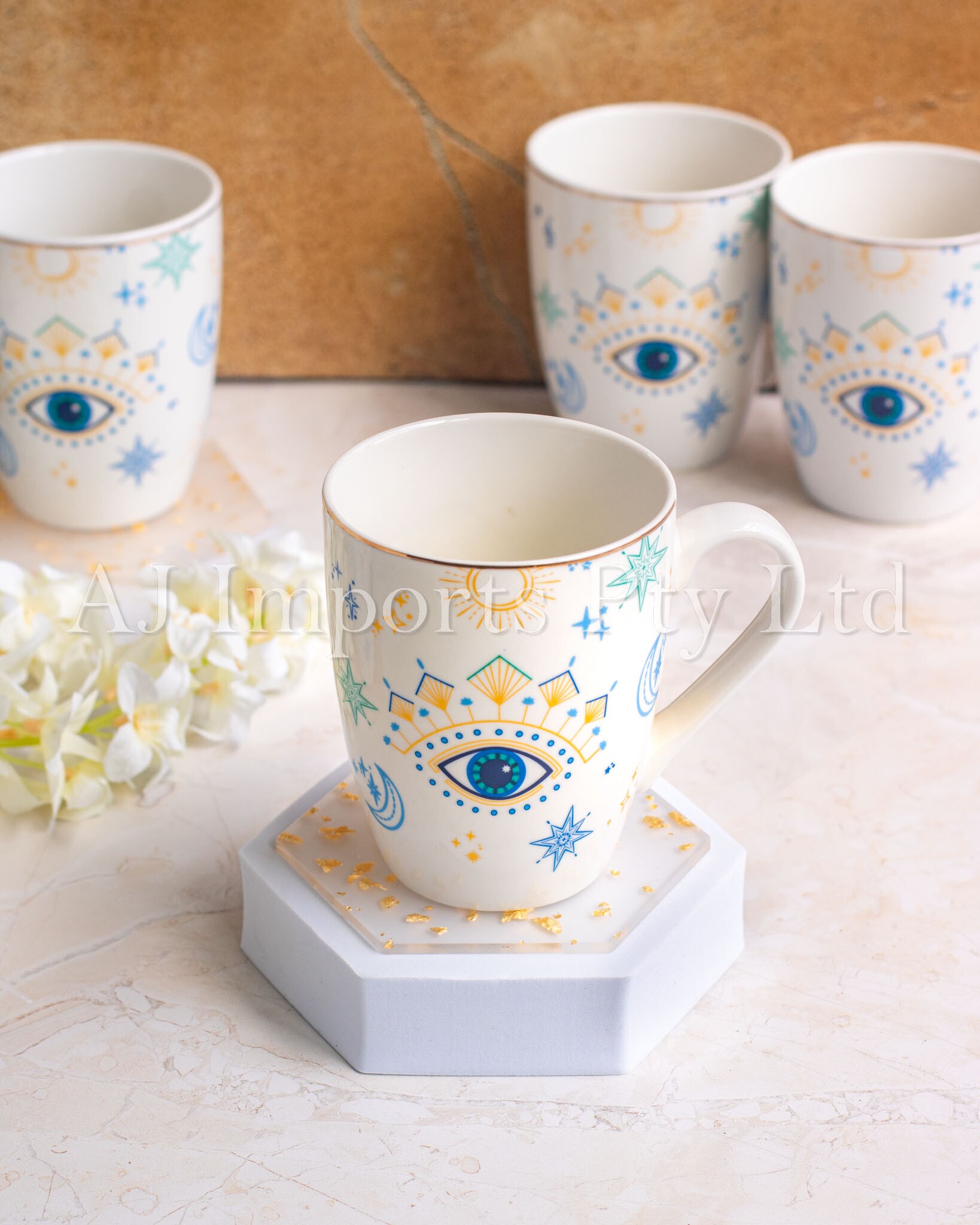 Celestial Eye Design Set of 6 Mugs – New Bone China