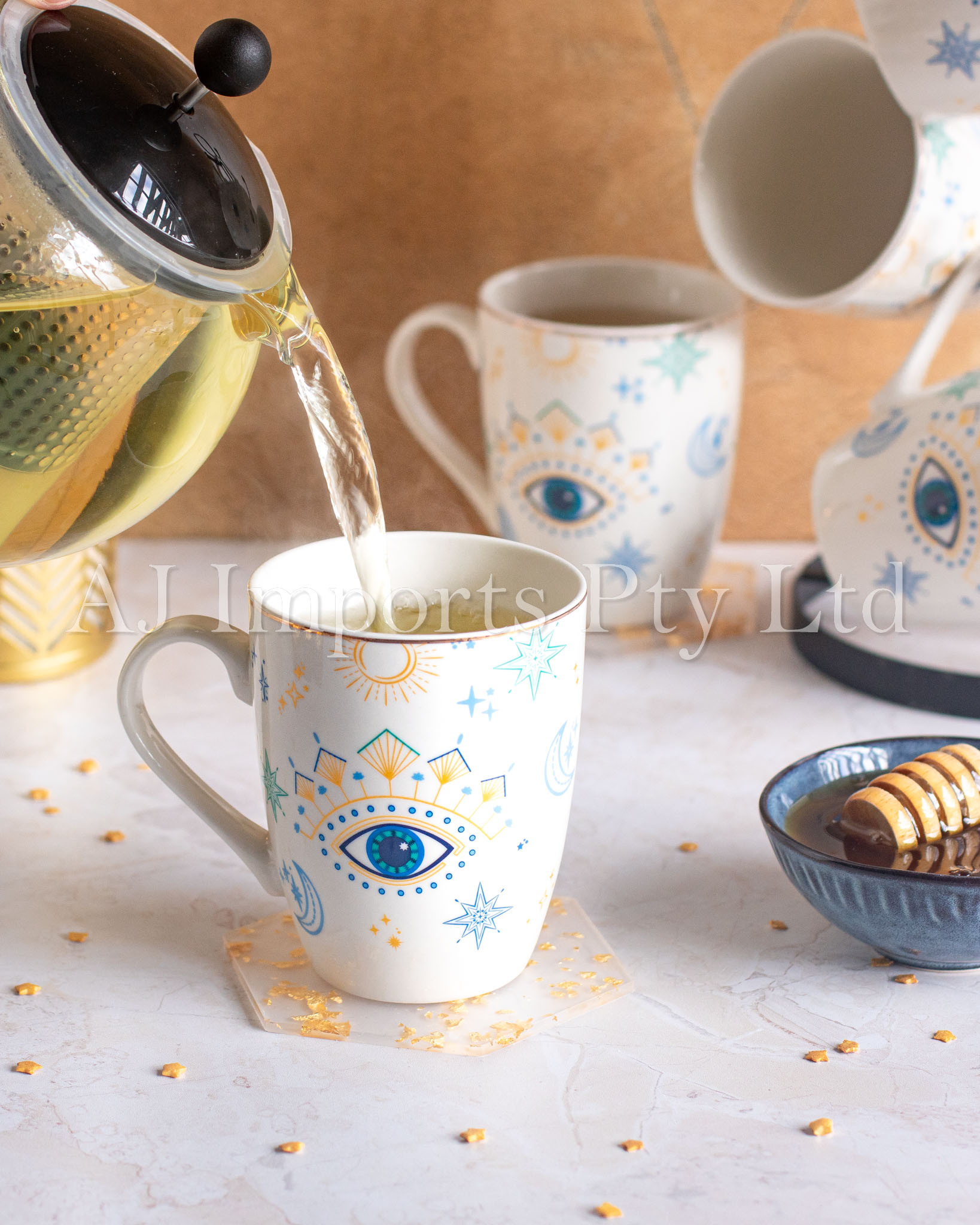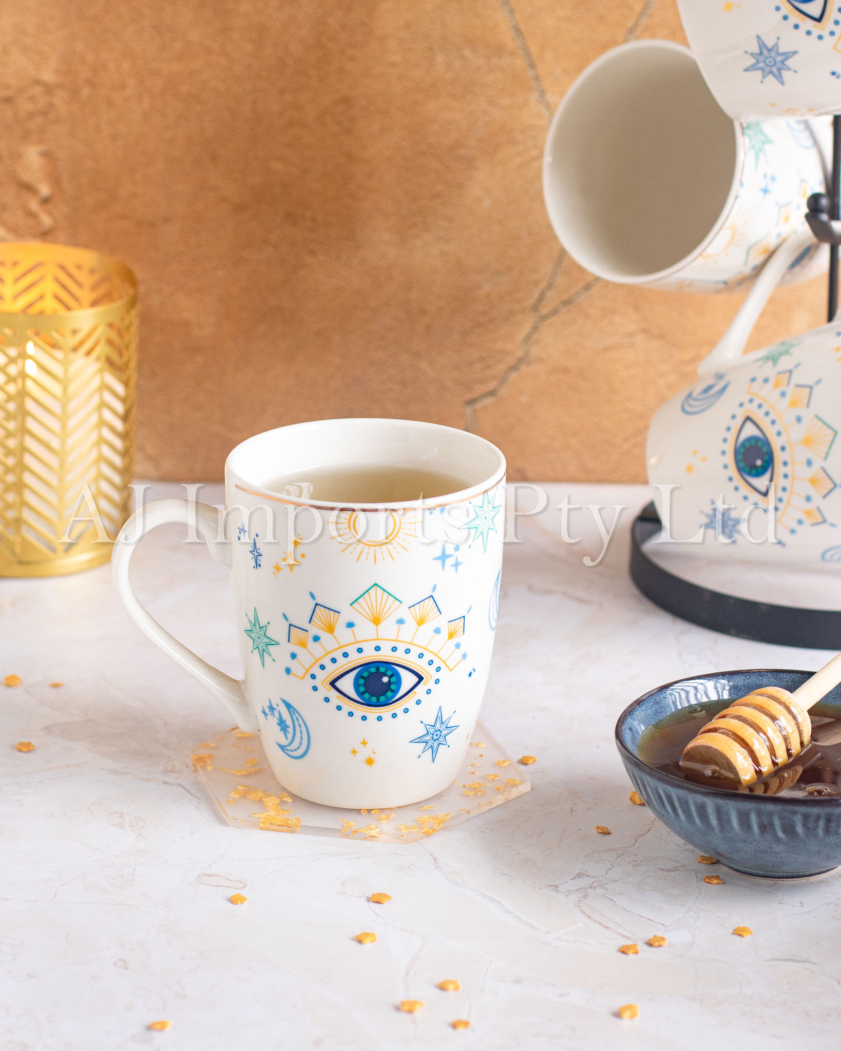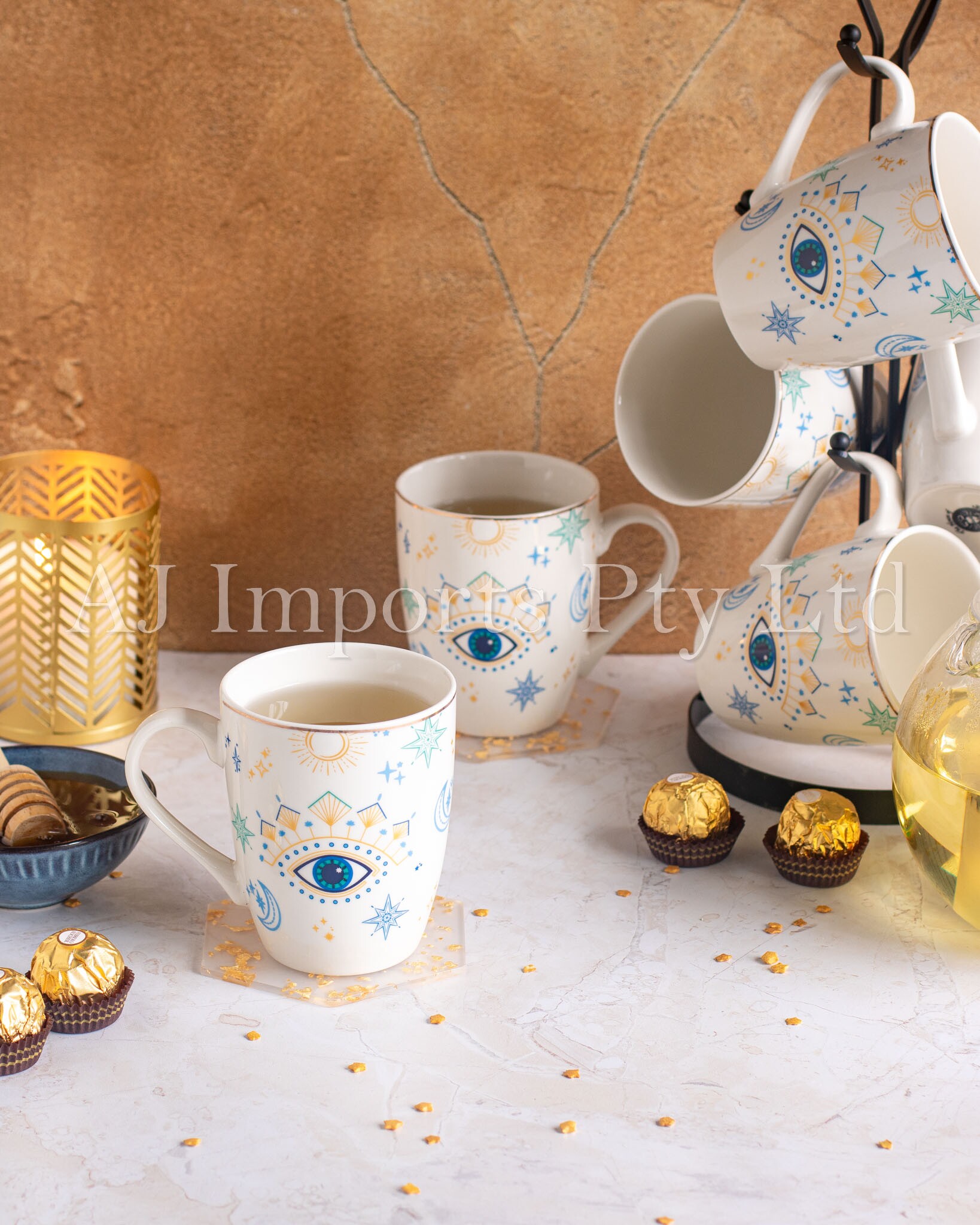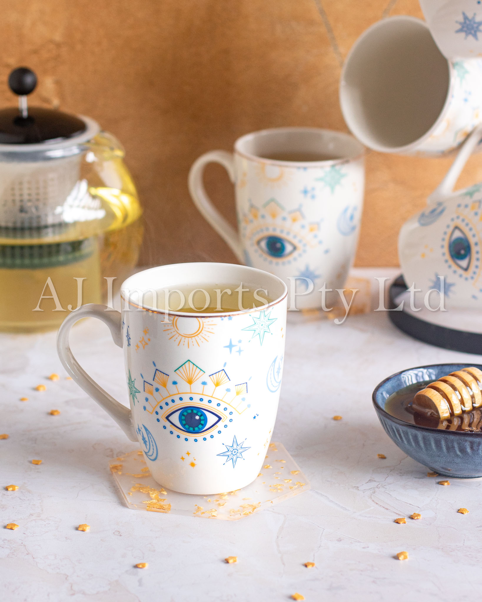 Celestial Eye Design Set of 6 Mugs – New Bone China