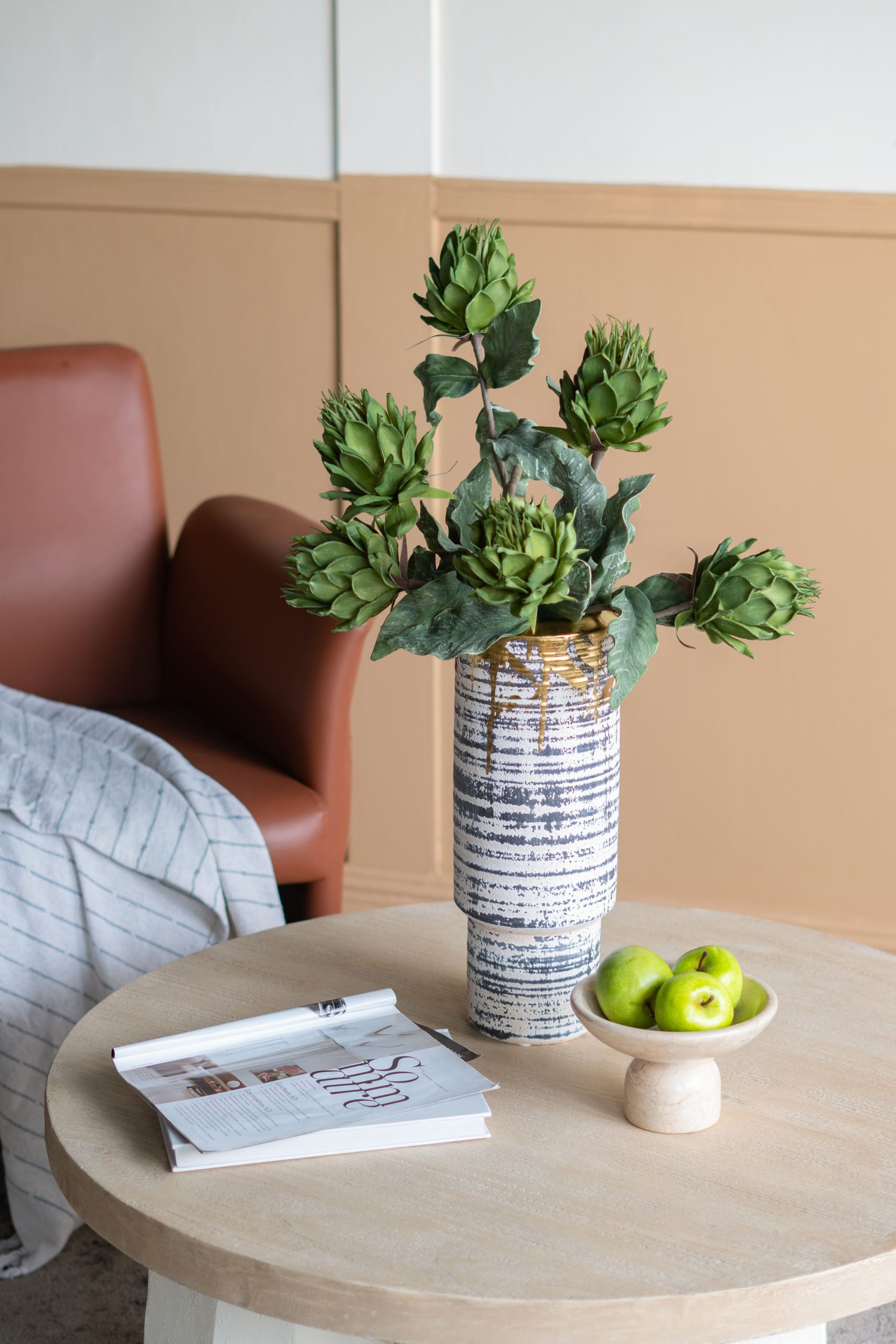 You’ve just refreshed your space — it’s clean and coordinated, but missing that one defining touch. Then you set this tall, textured ceramic vase beside the console or fireplace. Suddenly, the room feels balanced, elevated, and complete. That once-empty corner? Now a captivating focal point.