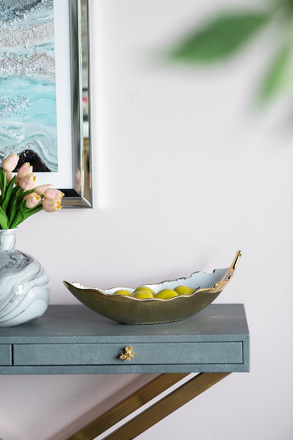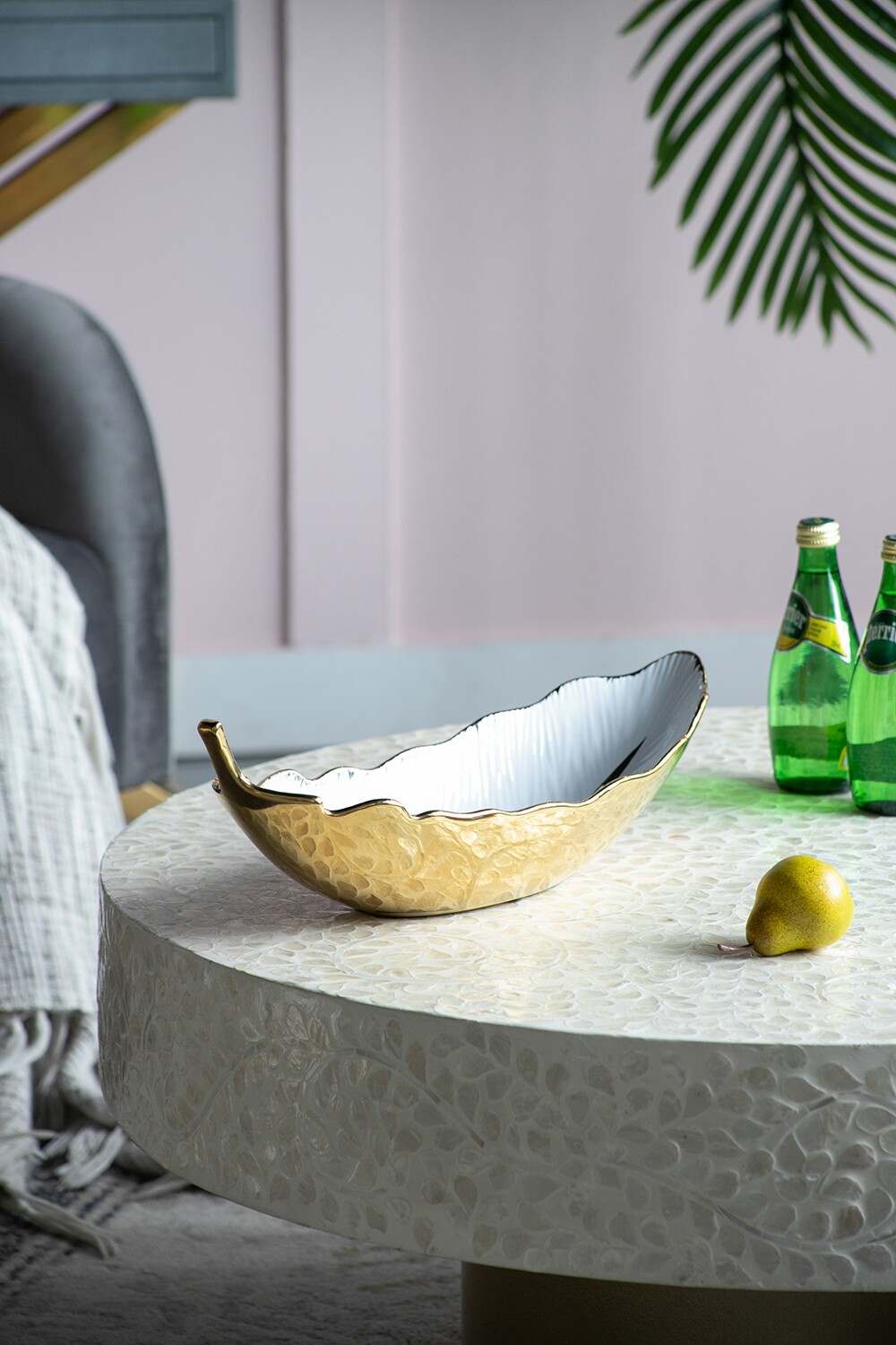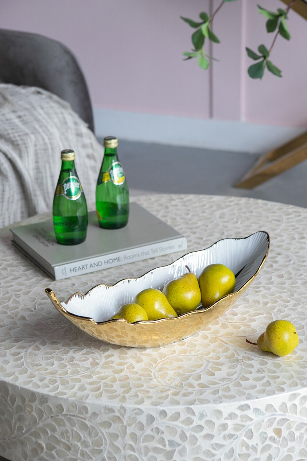 Fit for any tabletop, this decorative bowl is shaped like a leaf and comes in a white and gold finish. It’s perfect for adding a natural accent to your space, and looks right at home on the counter, a shelf, or a table. It will add a modern glamorous edge to any room.