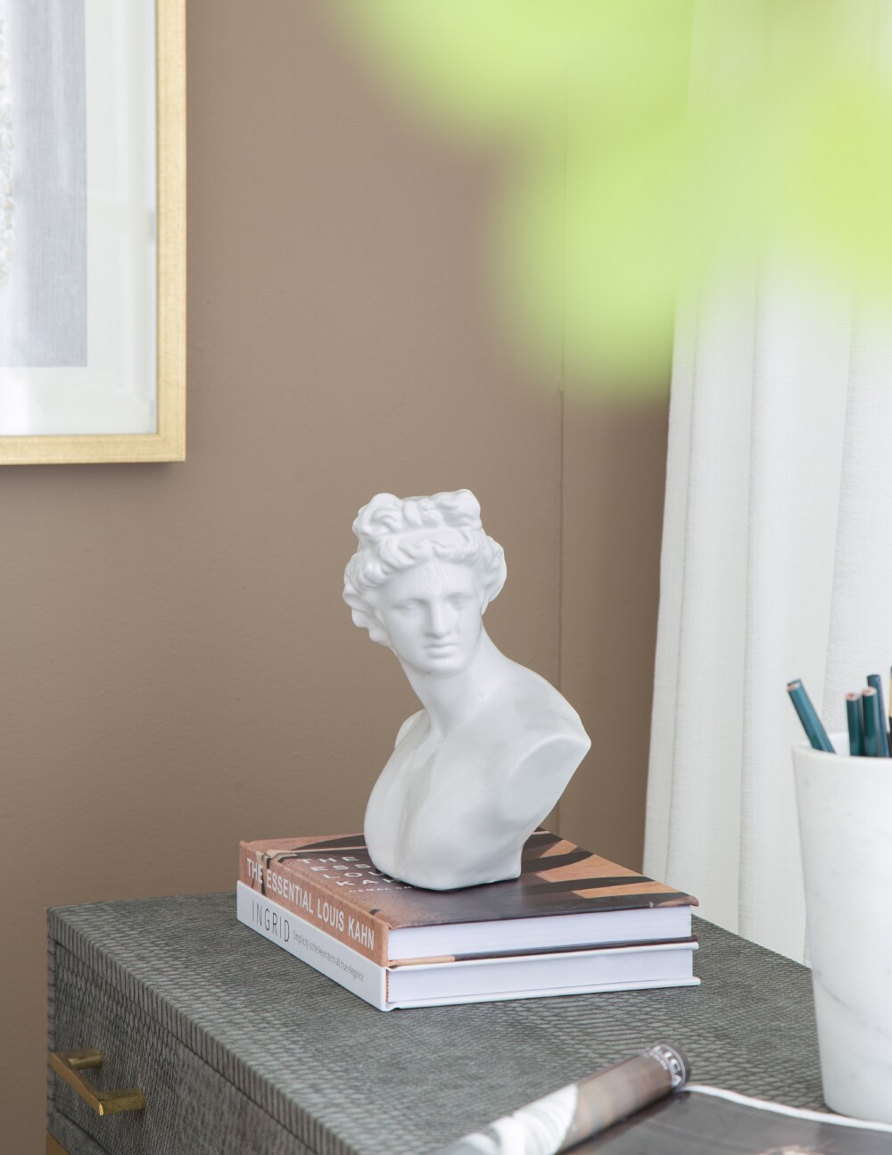 - Living Room: Make a bold statement with this classic sculpture on your coffee table or console.