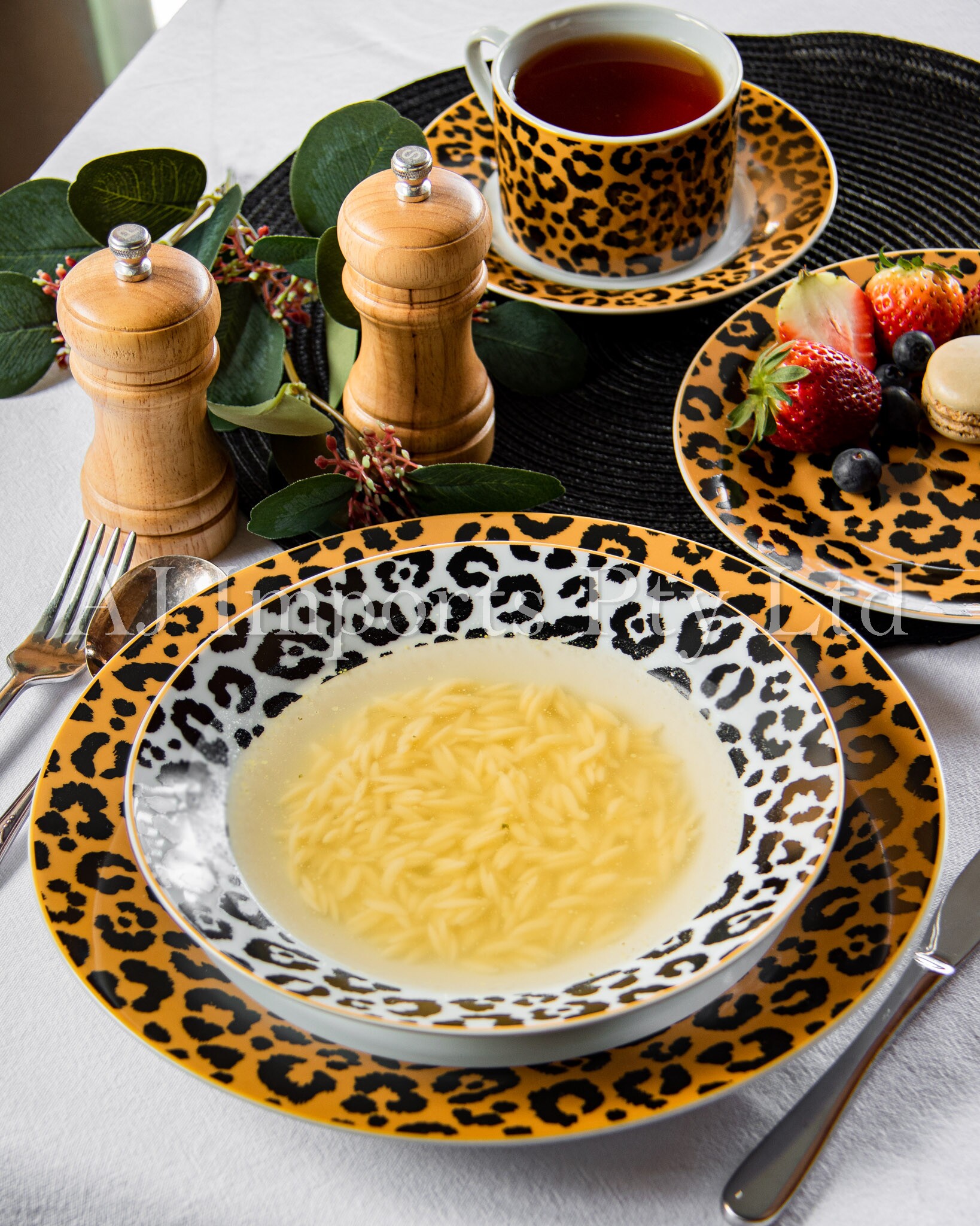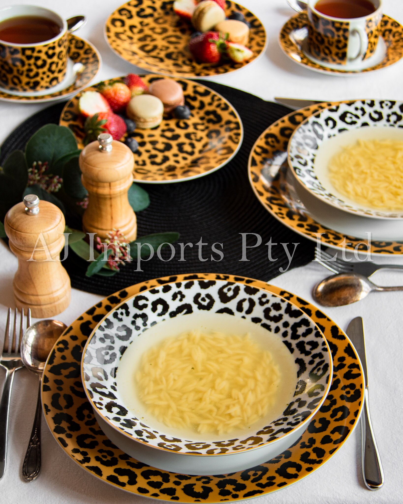 Crafted from high-quality porcelain, this dinner set not only dazzles with its aesthetics but also ensures durability and longevity, promising years of delightful dining experiences. Whether you’re hosting a dinner party or enjoying a quiet meal with loved ones, the Leopard print 20-piece Dinner Set in Honey Gold and Black is sure to leave a lasting impression with its unparalleled beauty and charm. Elevate your dining experience and unleash your inner style with this exquisite dinner set.