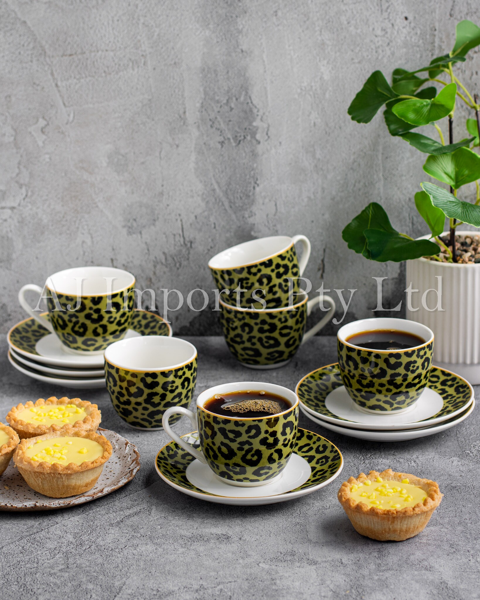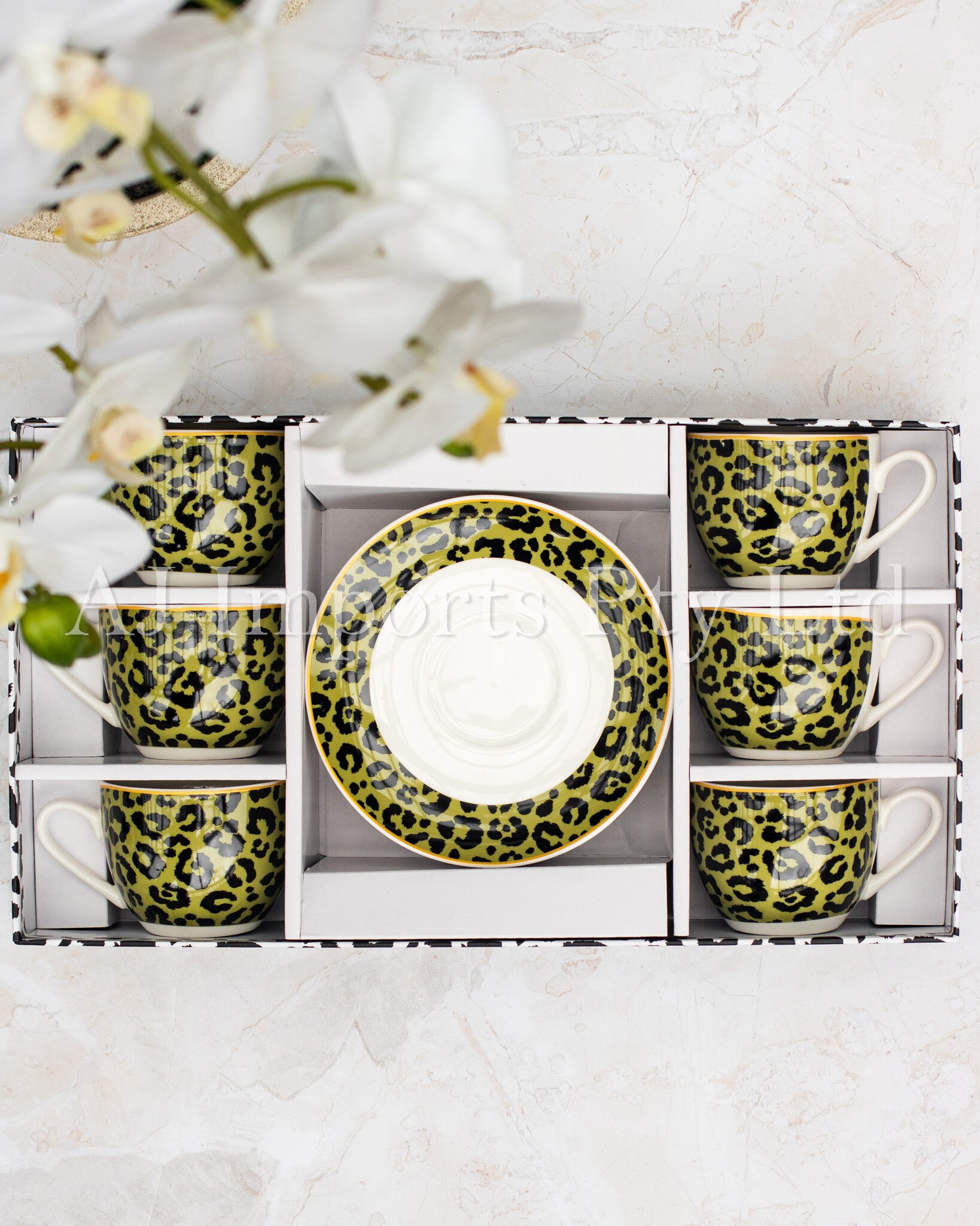 Introducing our stunning Leopard Print 12-Piece Espresso Cup and Saucer Set, where elegance meets the wild side. Crafted from high-quality porcelain, this set brings sophistication and style to your coffee routine.