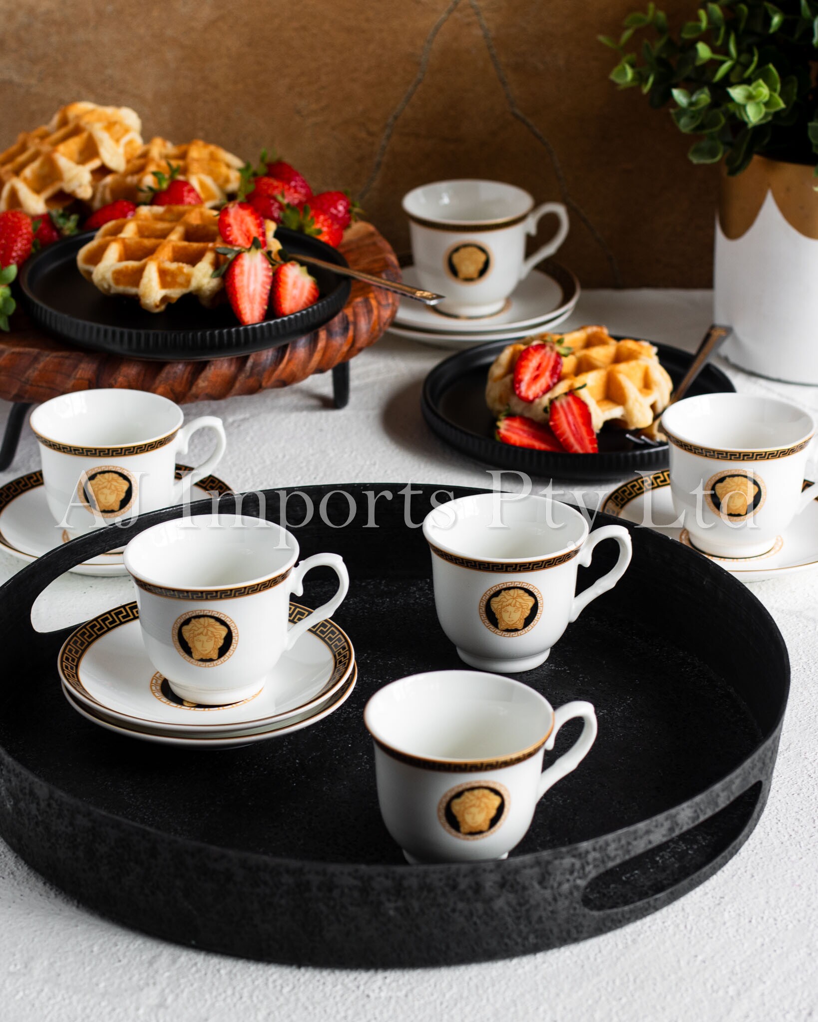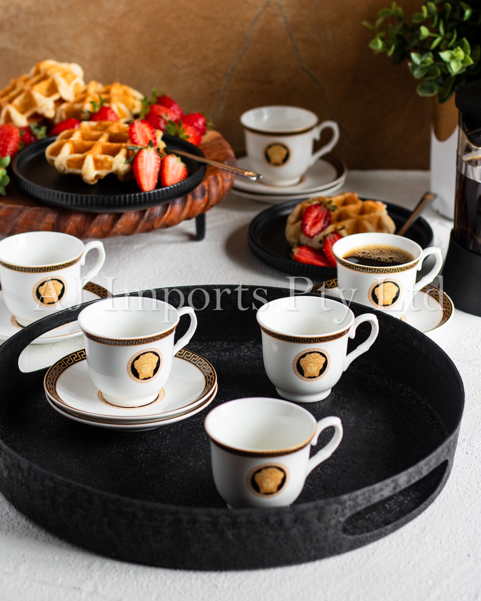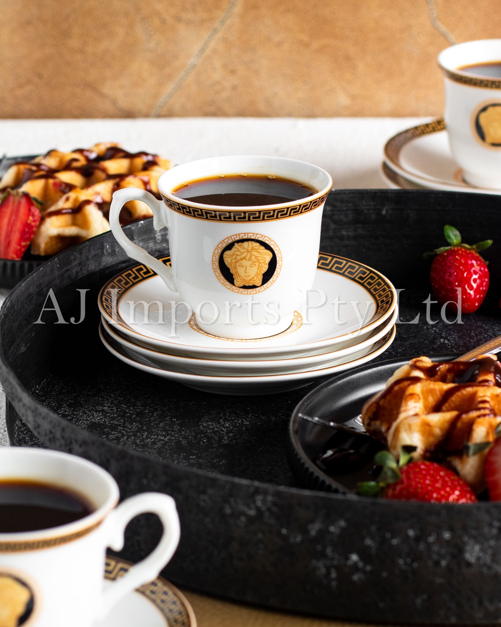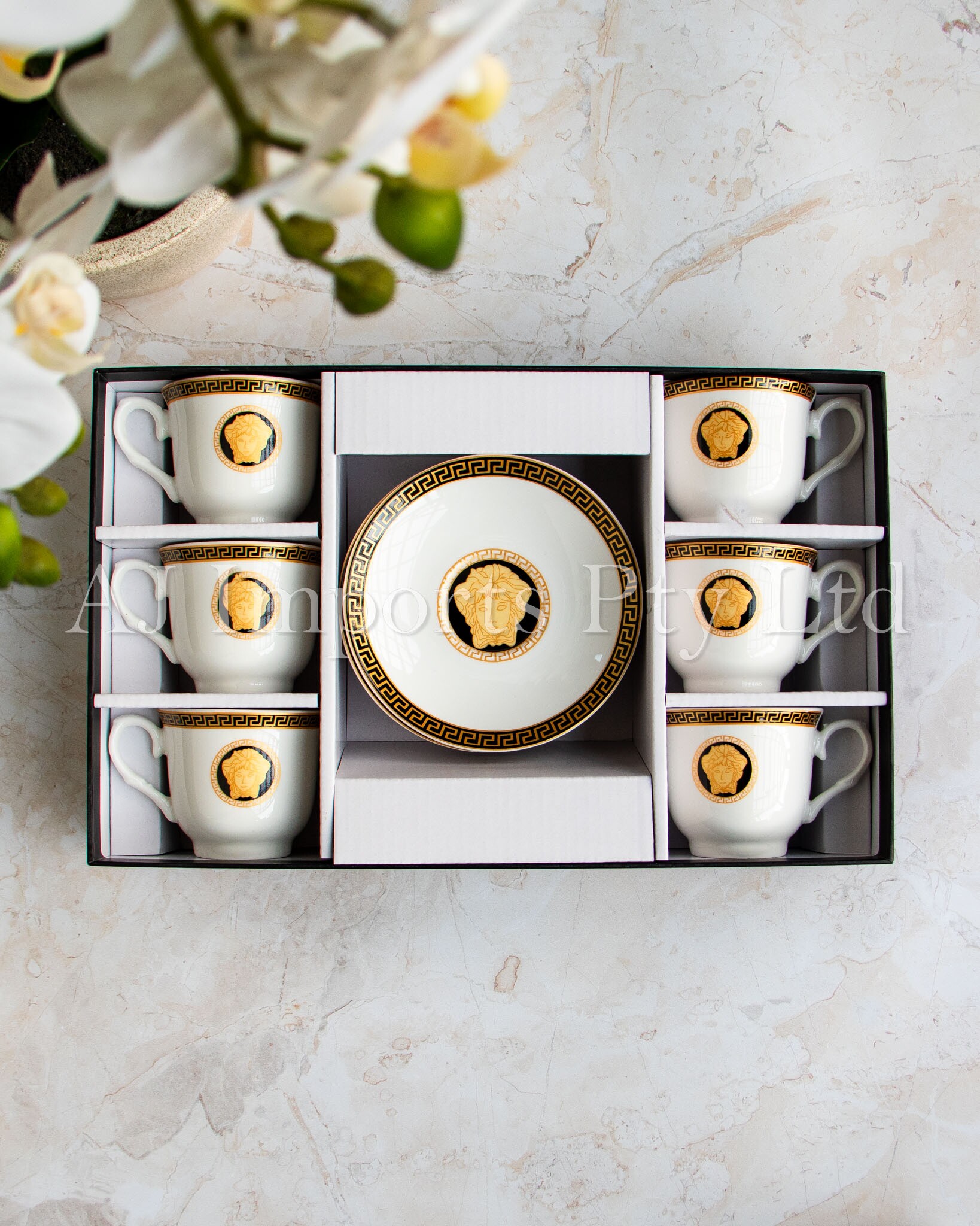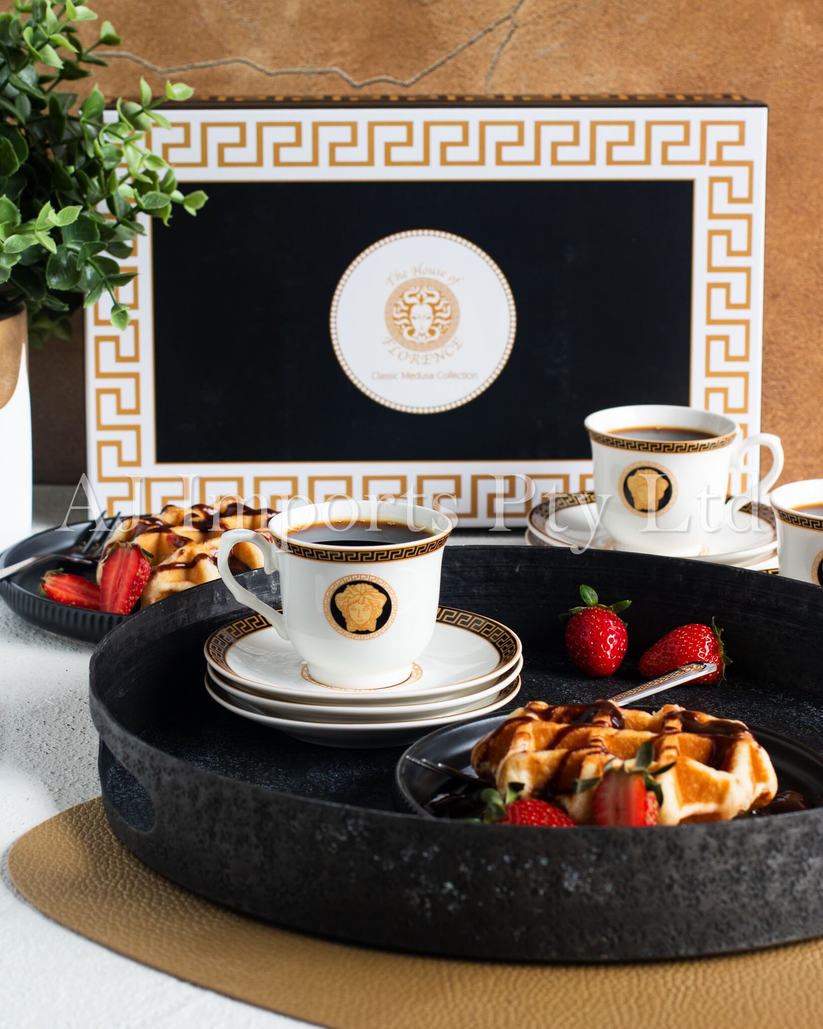 The House of Florence – Medusa Black and Gold Vintage Espresso Cup Set