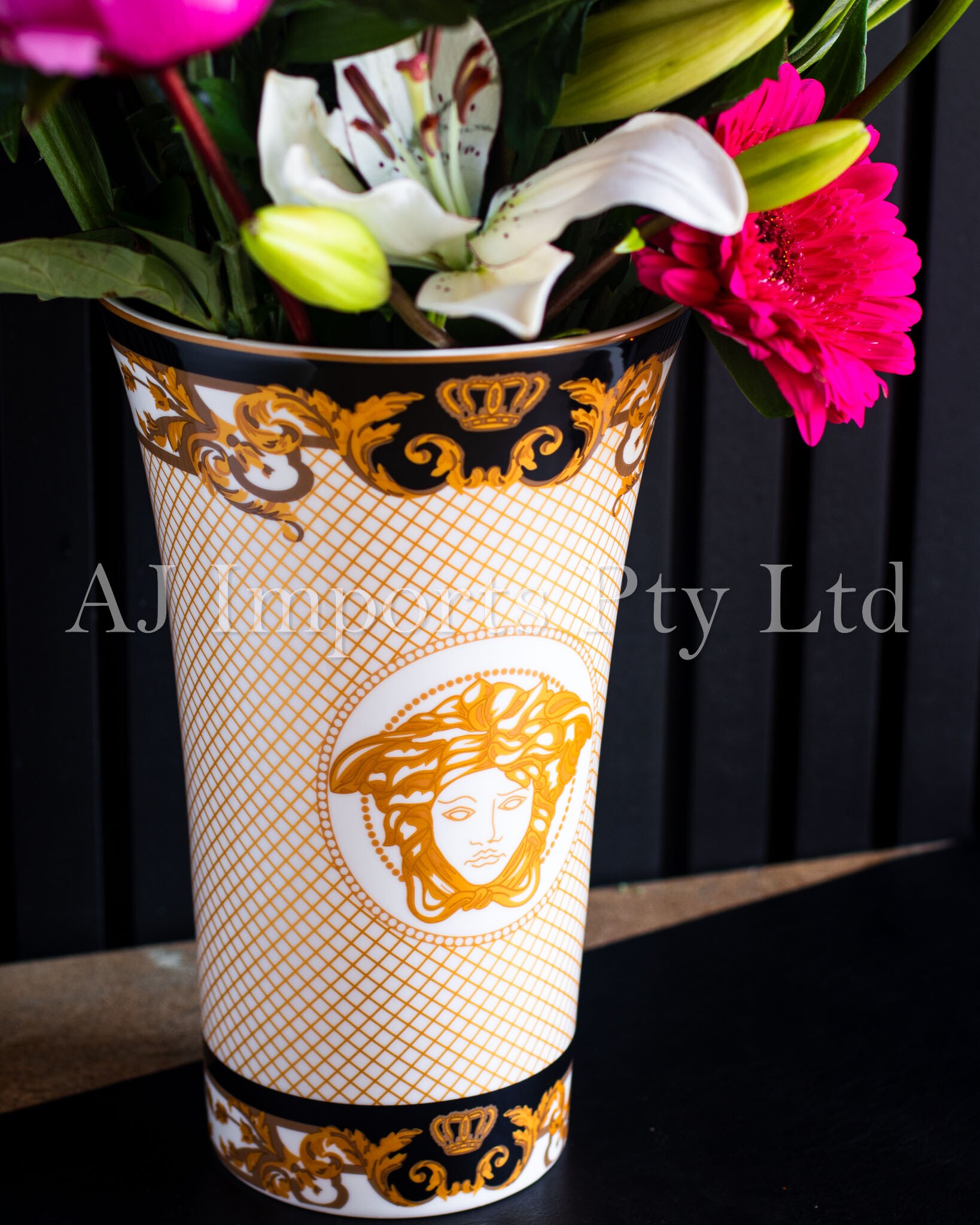 The House of Florence- Medusa Luxe Gold and Black Decorative Vase