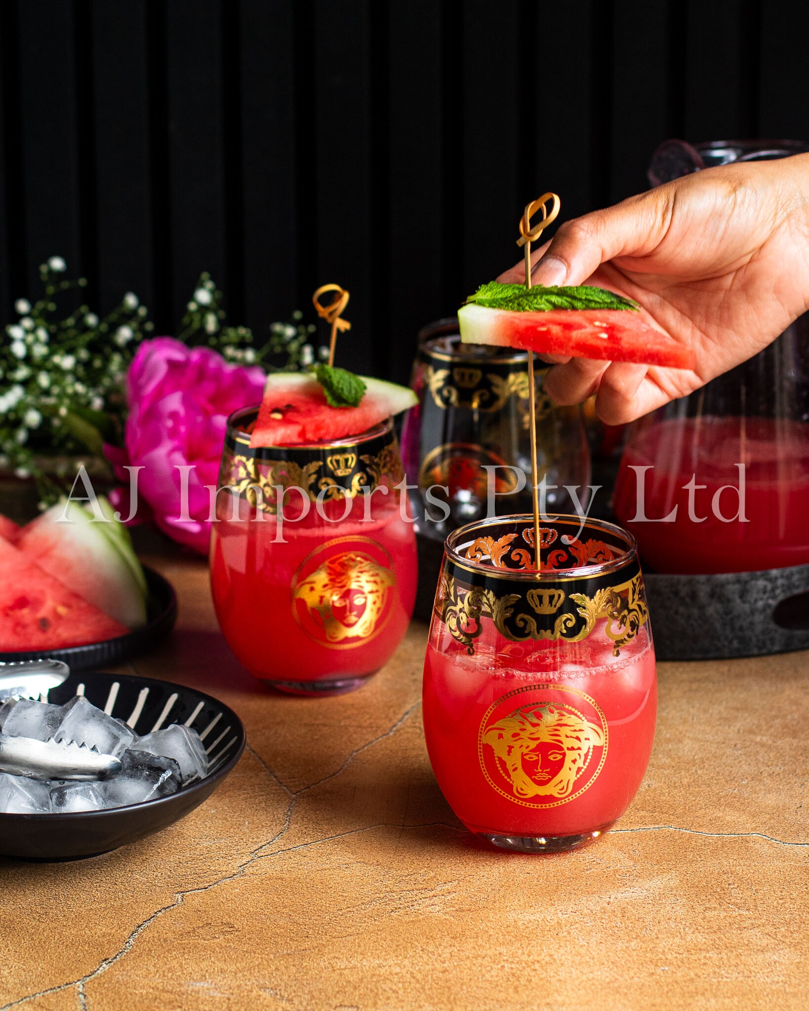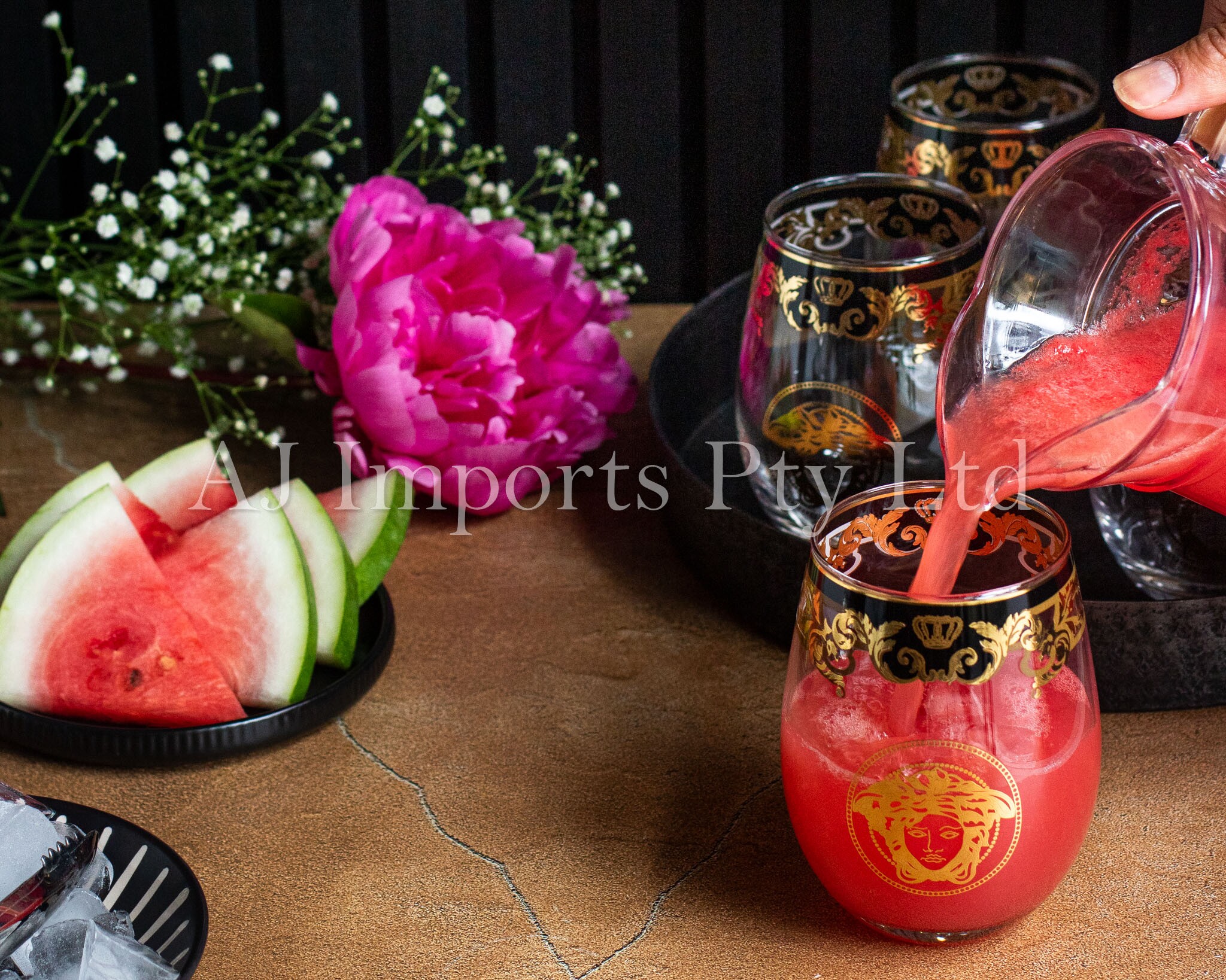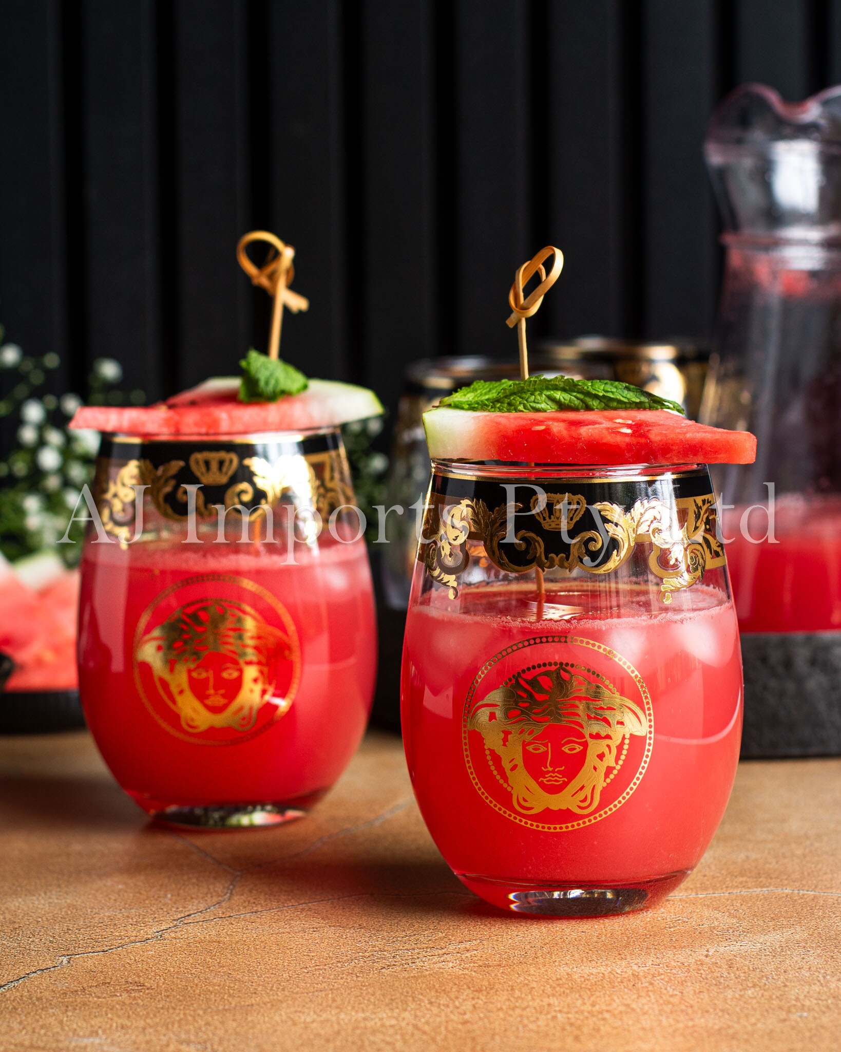 Introducing our exquisite set of Medusa Style Highball Drinking Glasses, where sophistication meets contemporary design. Elevate your drinking experience with these stunning glasses that seamlessly blend classic charm with a touch of modern elegance.