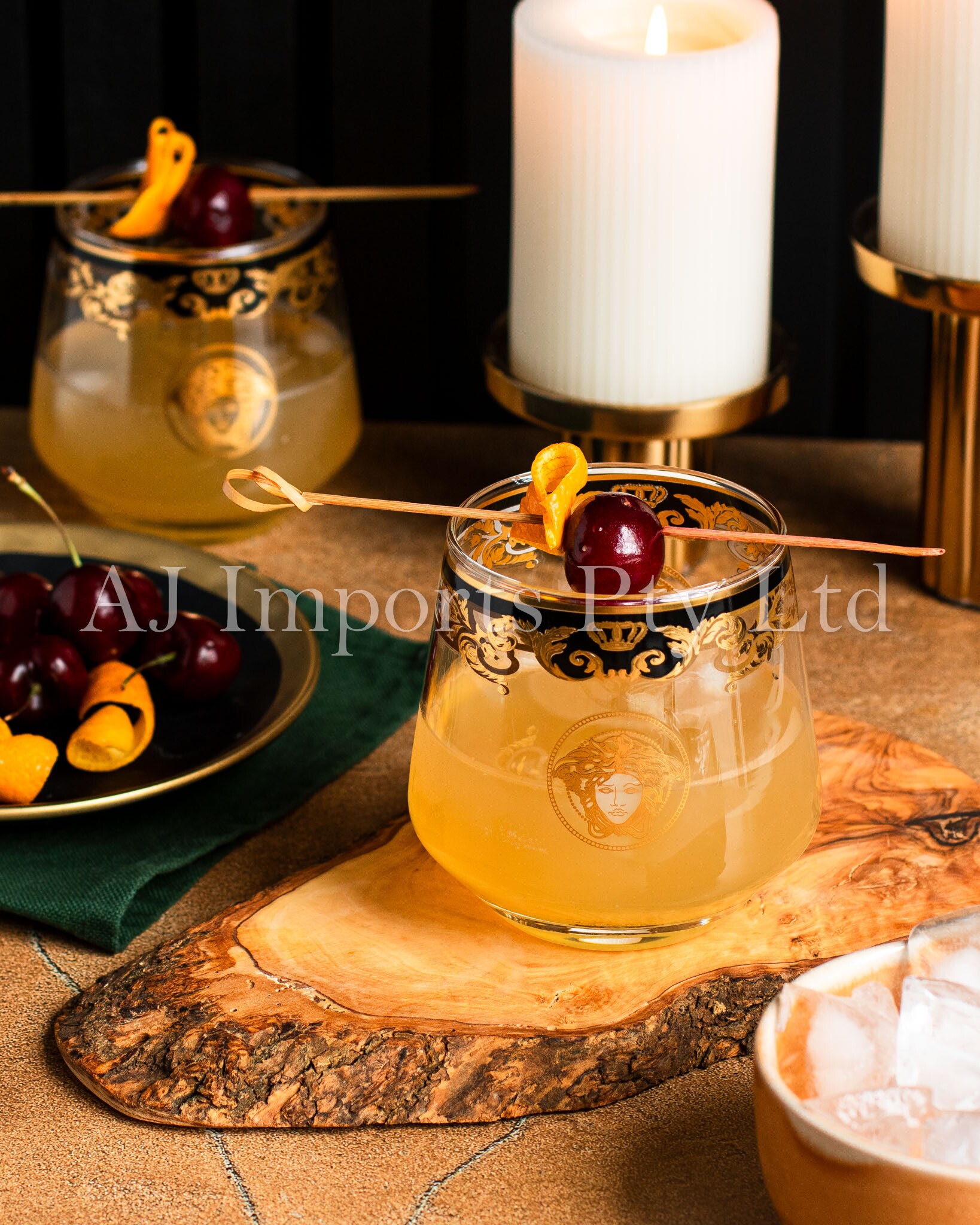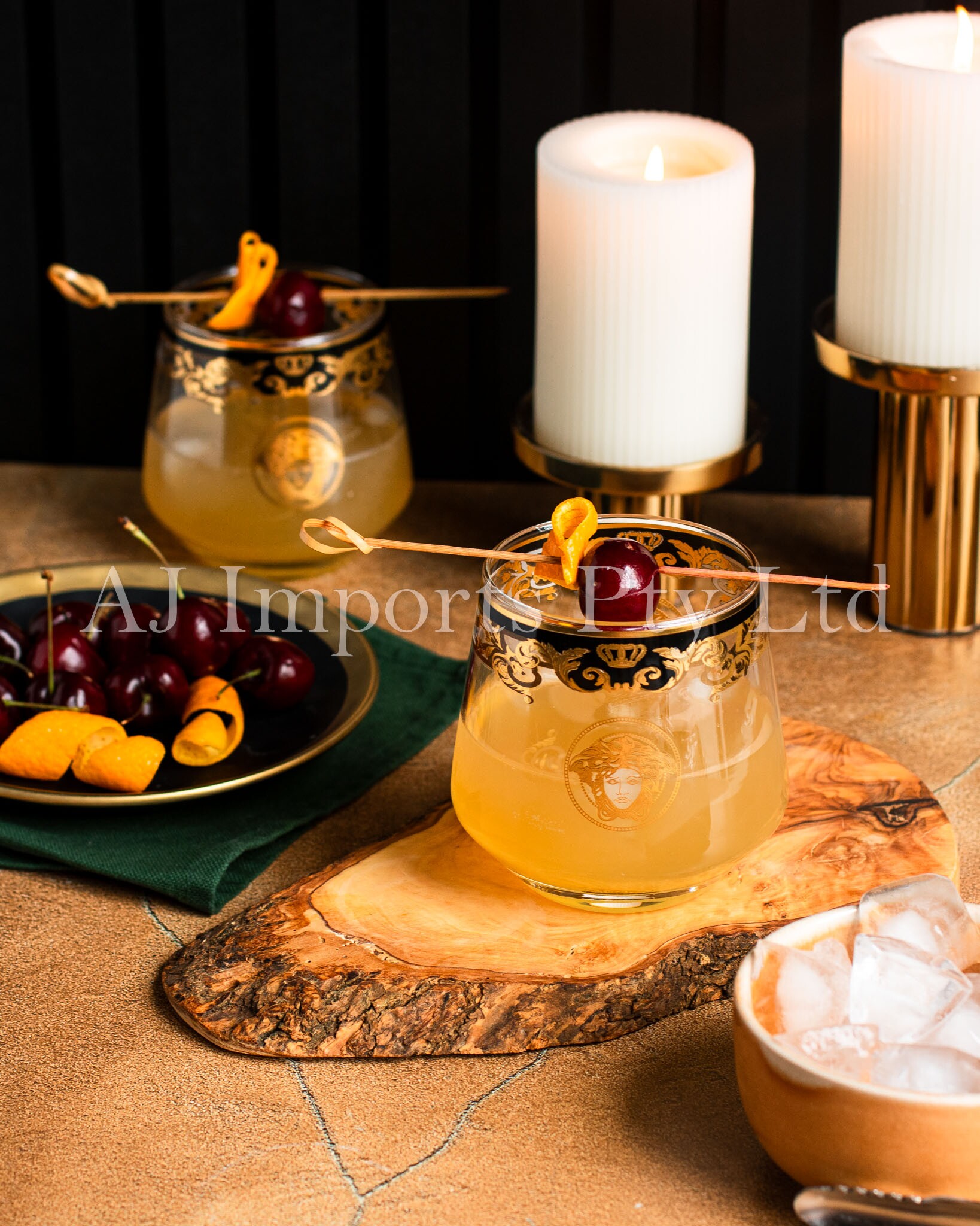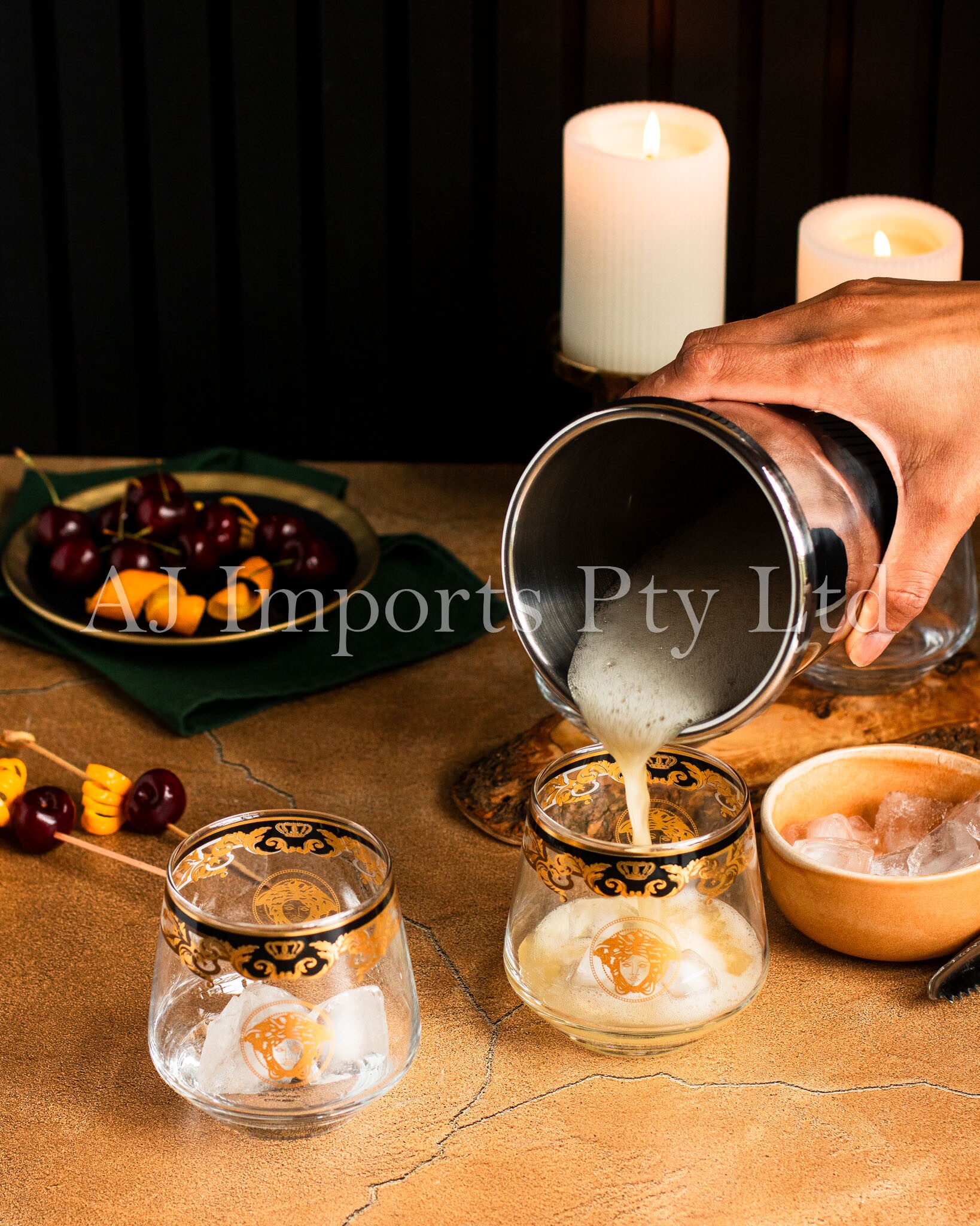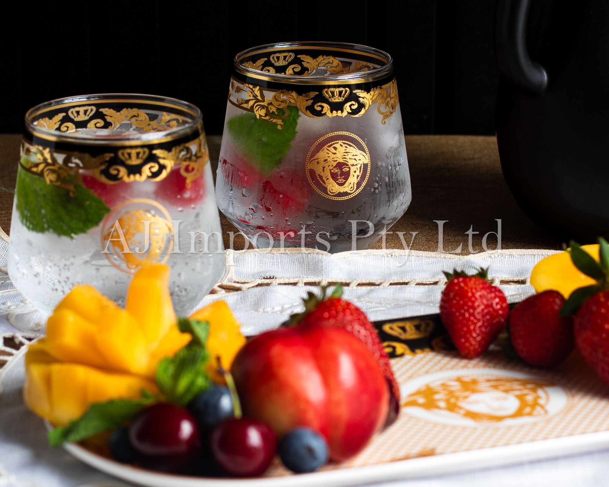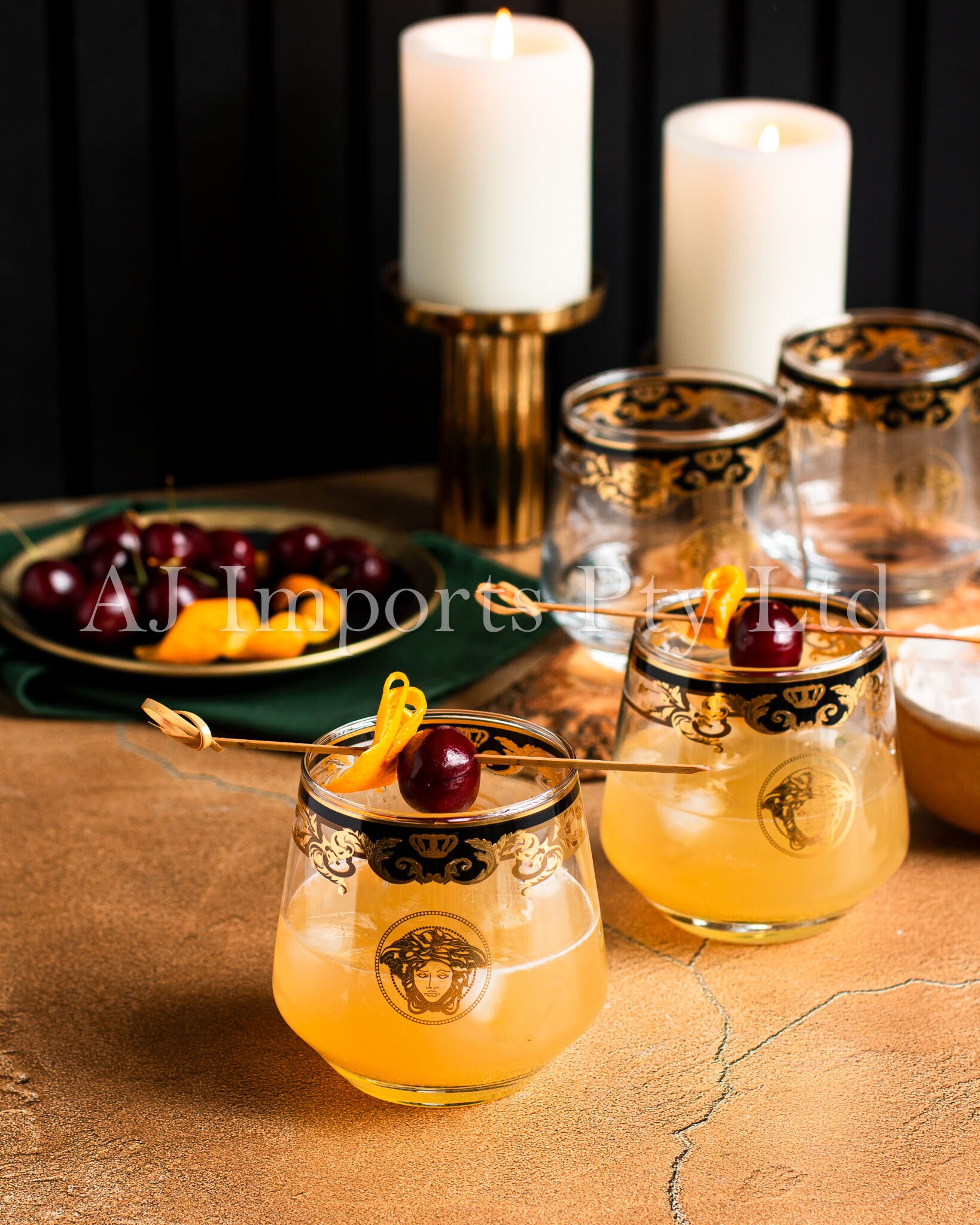 Elevate your Scotch-drinking experience with our exquisite Medusa-inspired glasses, a true testament to sophistication and luxury. These glasses are not just drinkware; they are a masterpiece, seamlessly design with opulent gold and black accents.