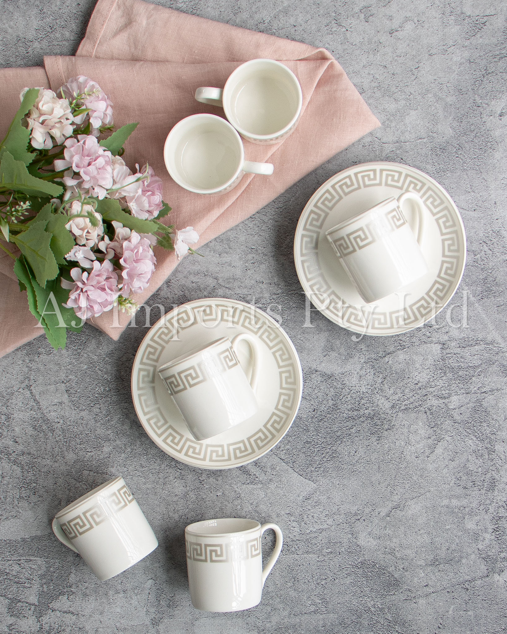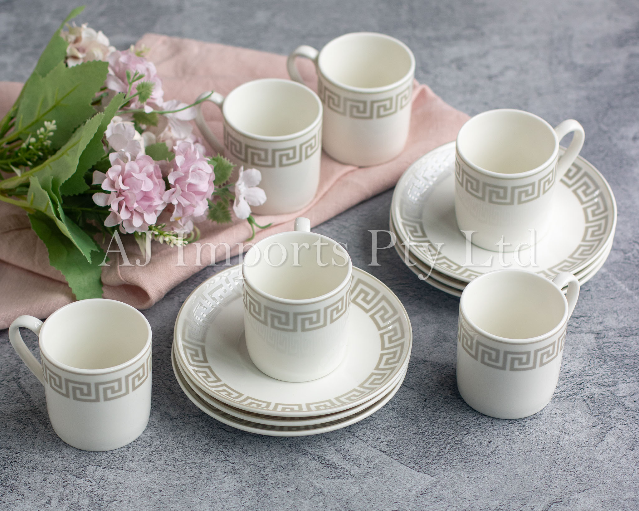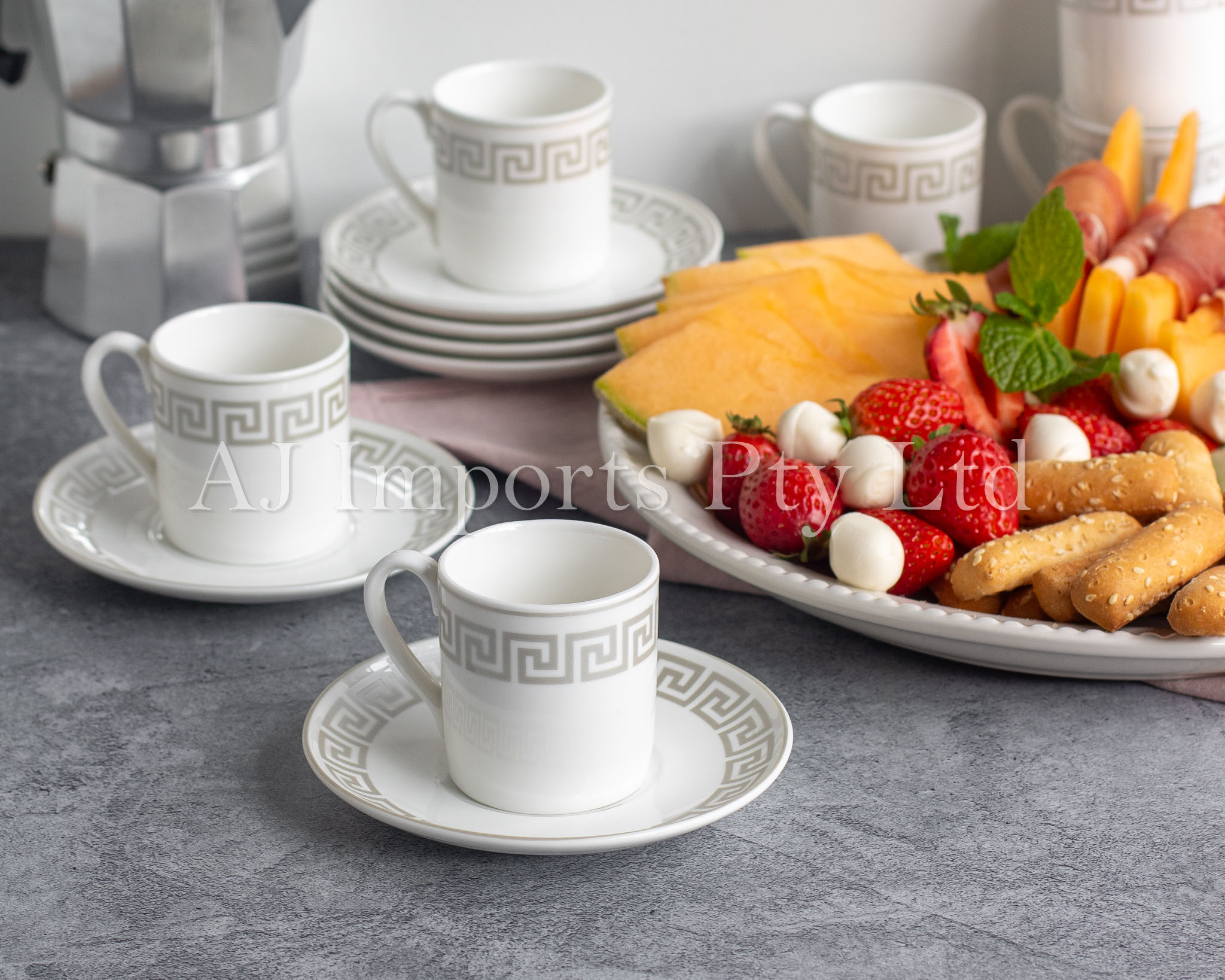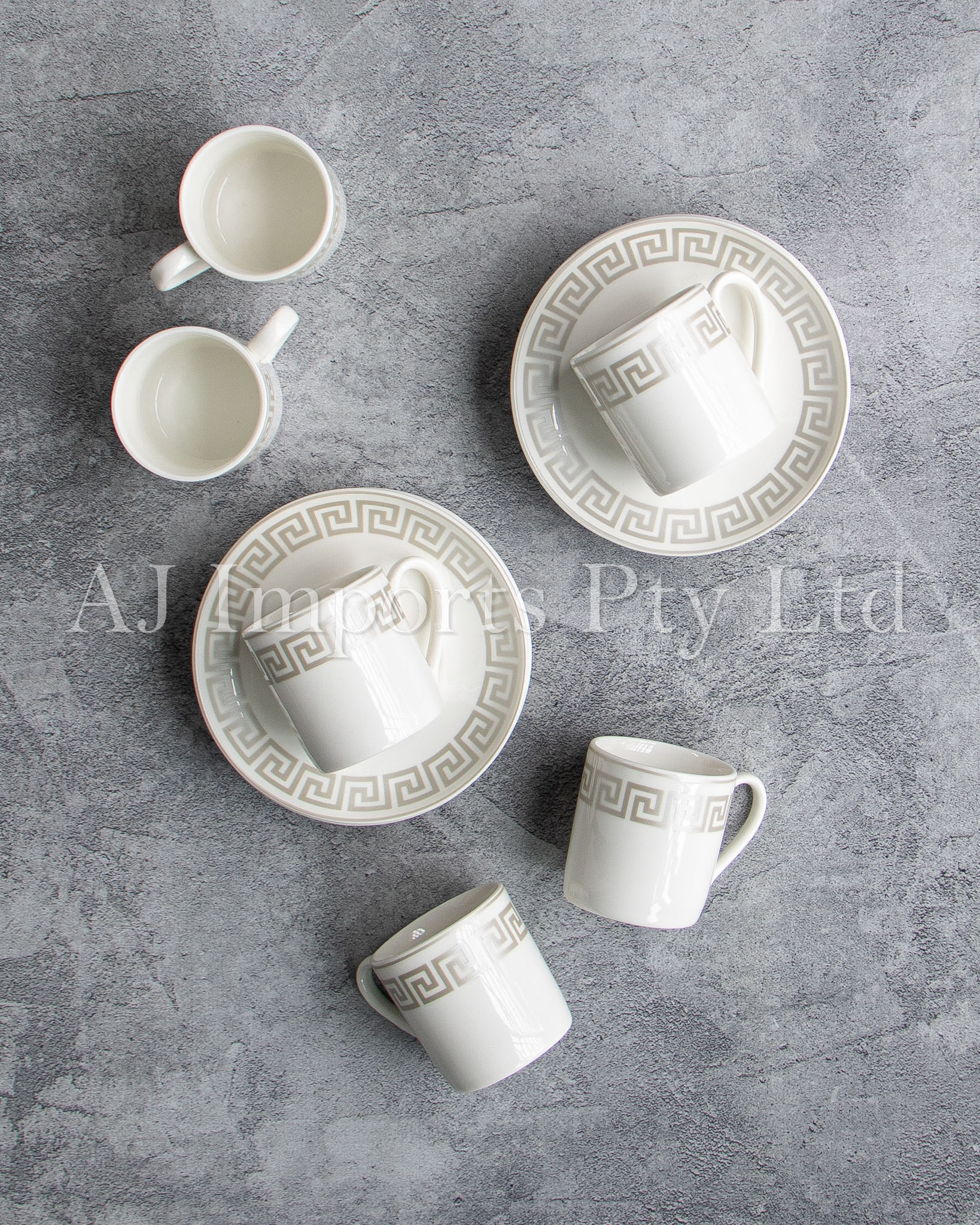 Bring home the charm of classical Greek elegance with the Olympia Silver Espresso Set. Featuring a stunning silver Greek key pattern around the rim, this luxurious set is the perfect combination of timeless design and everyday functionality. Whether you’re serving guests or enjoying a quiet coffee moment, these cups and saucers deliver beauty and sophistication with every sip.
