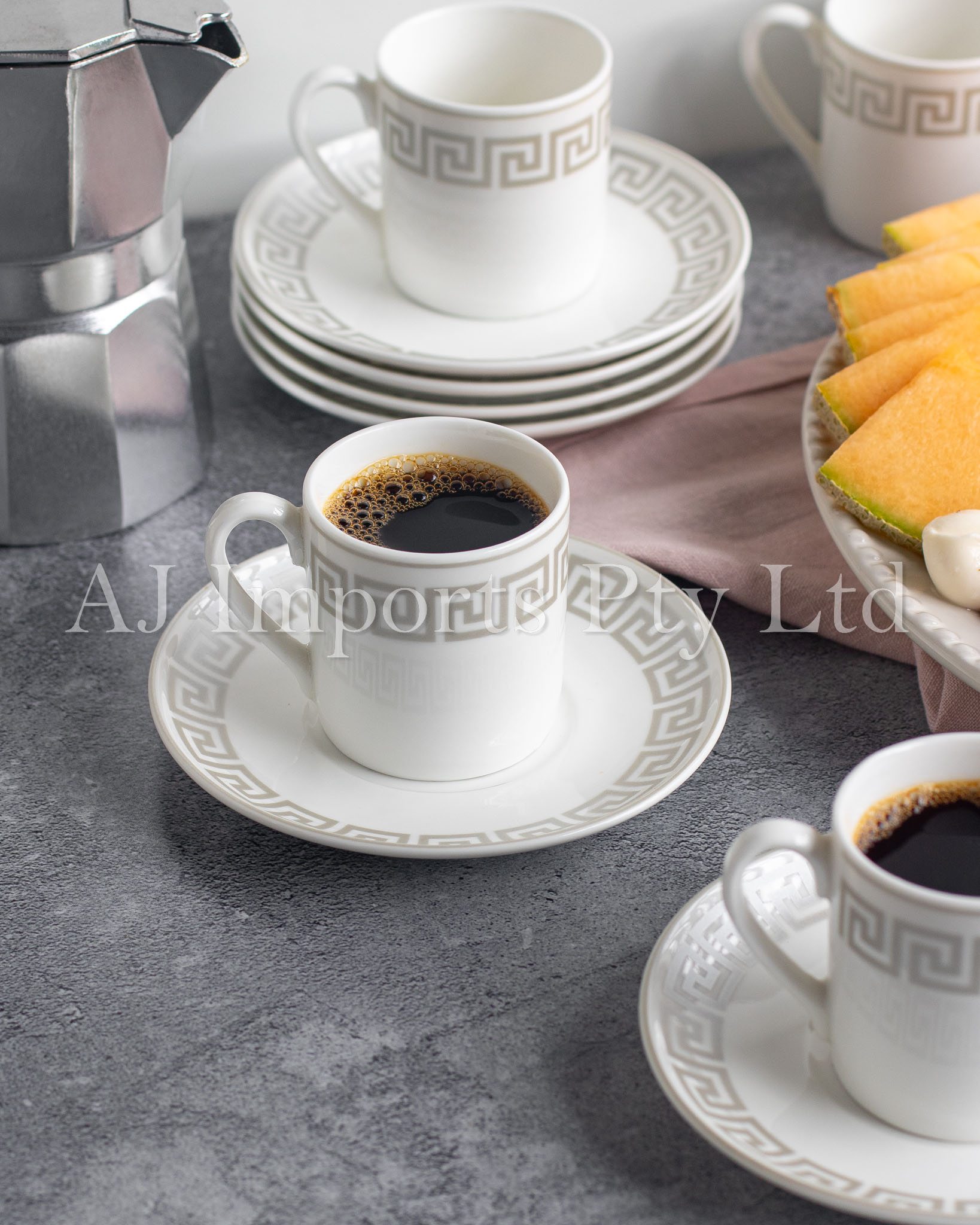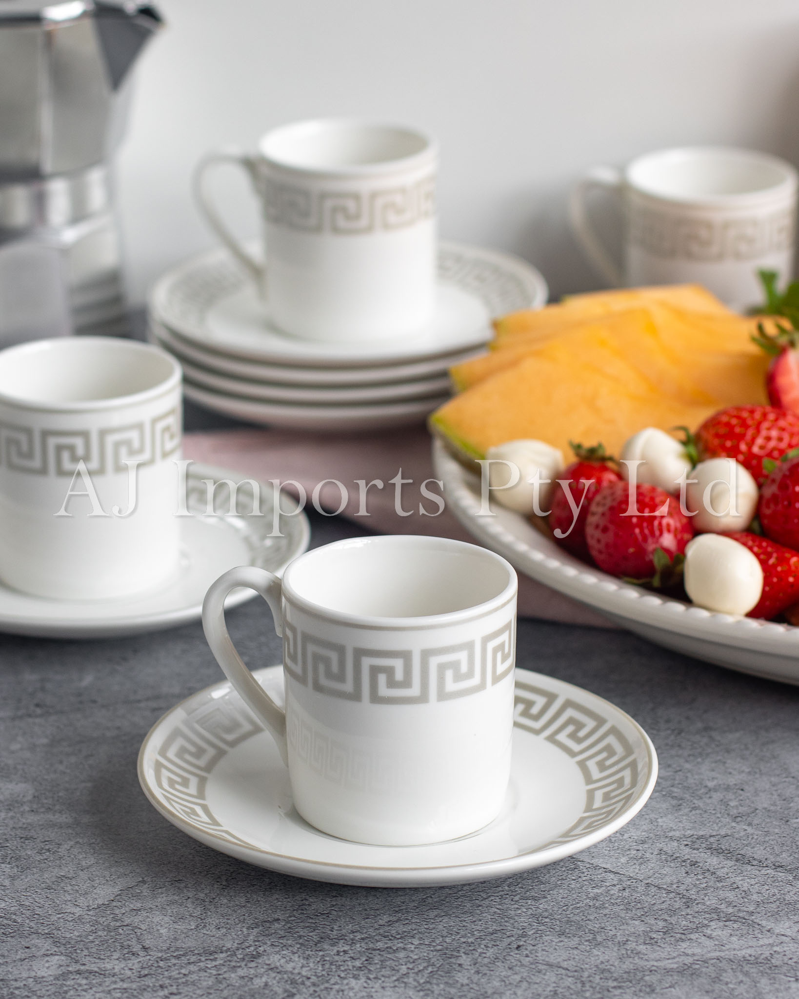 - Elegant Greek Key Design – A timeless gold Greek key border adds luxury and heritage to your espresso experience.