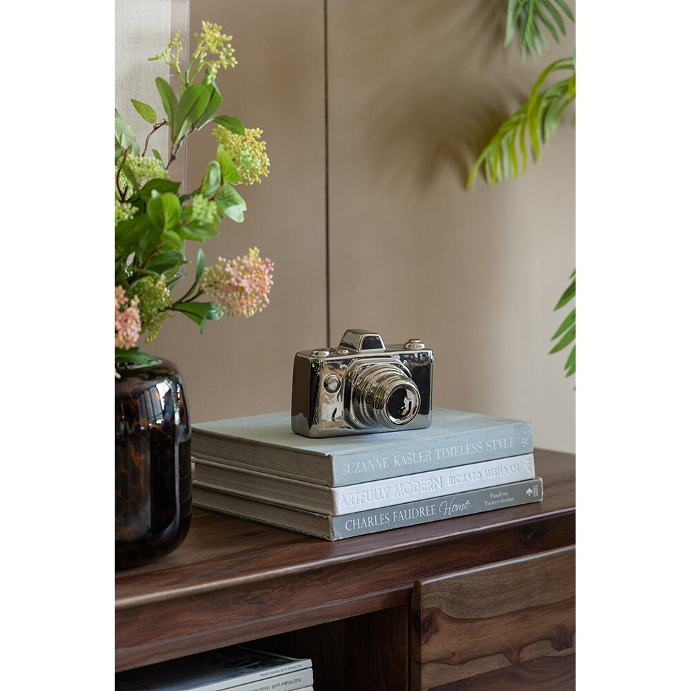 Add an artistic and photography-inspired touch to your home or office with the Silver Camera Decor Piece. A subtle yet stylish addition to your interior, this sleek silver camera brings a sense of creativity, sophistication, and modernism to any space.