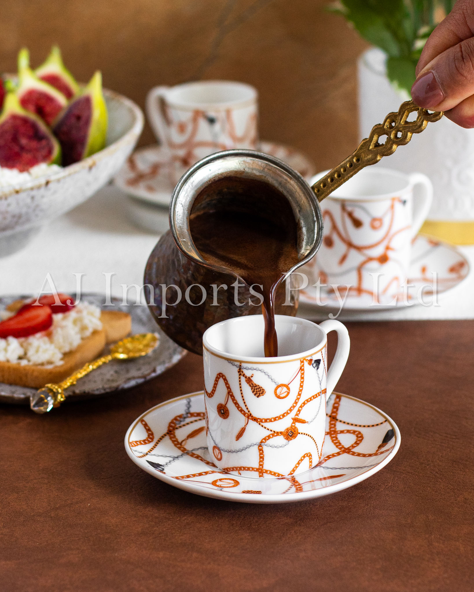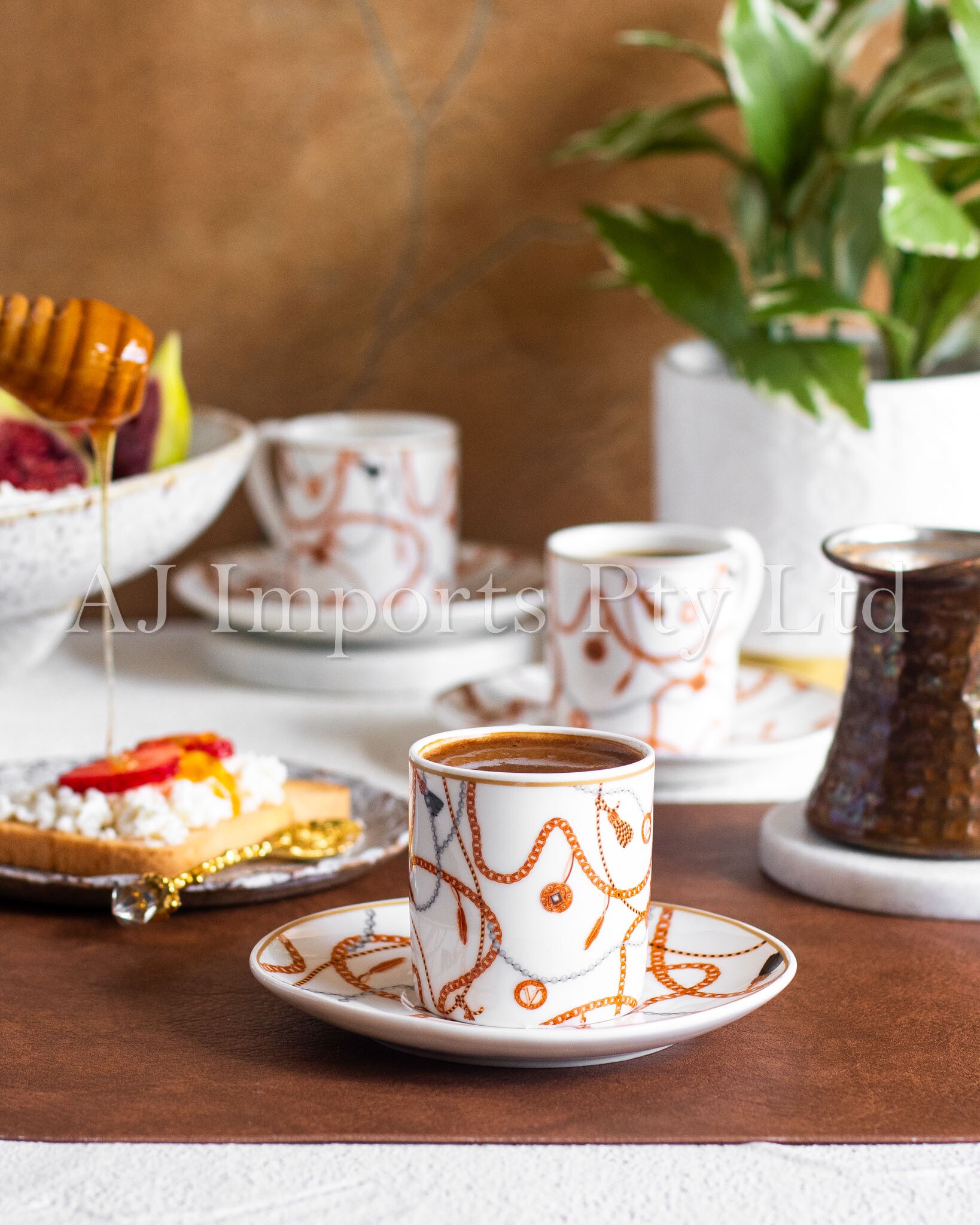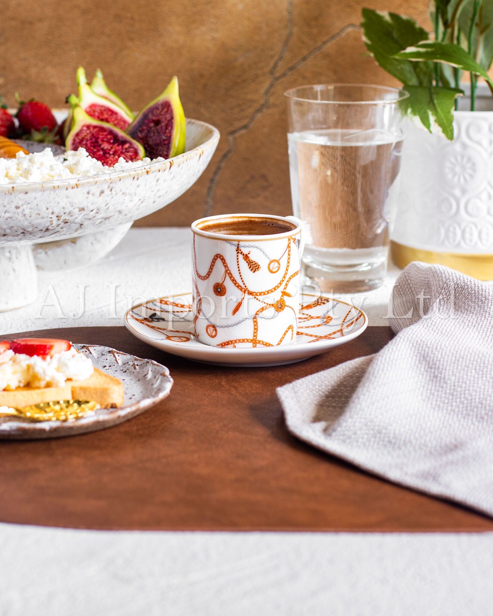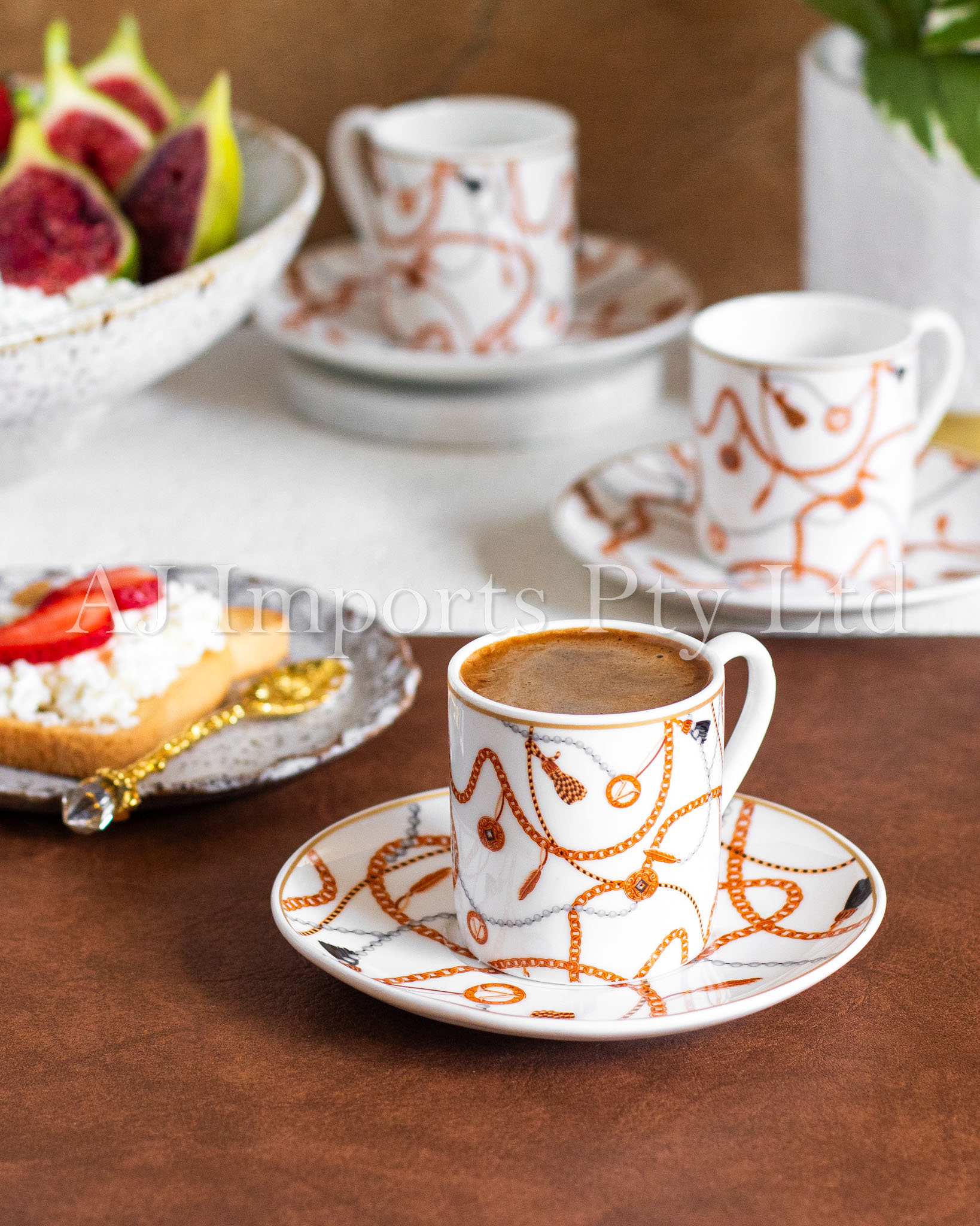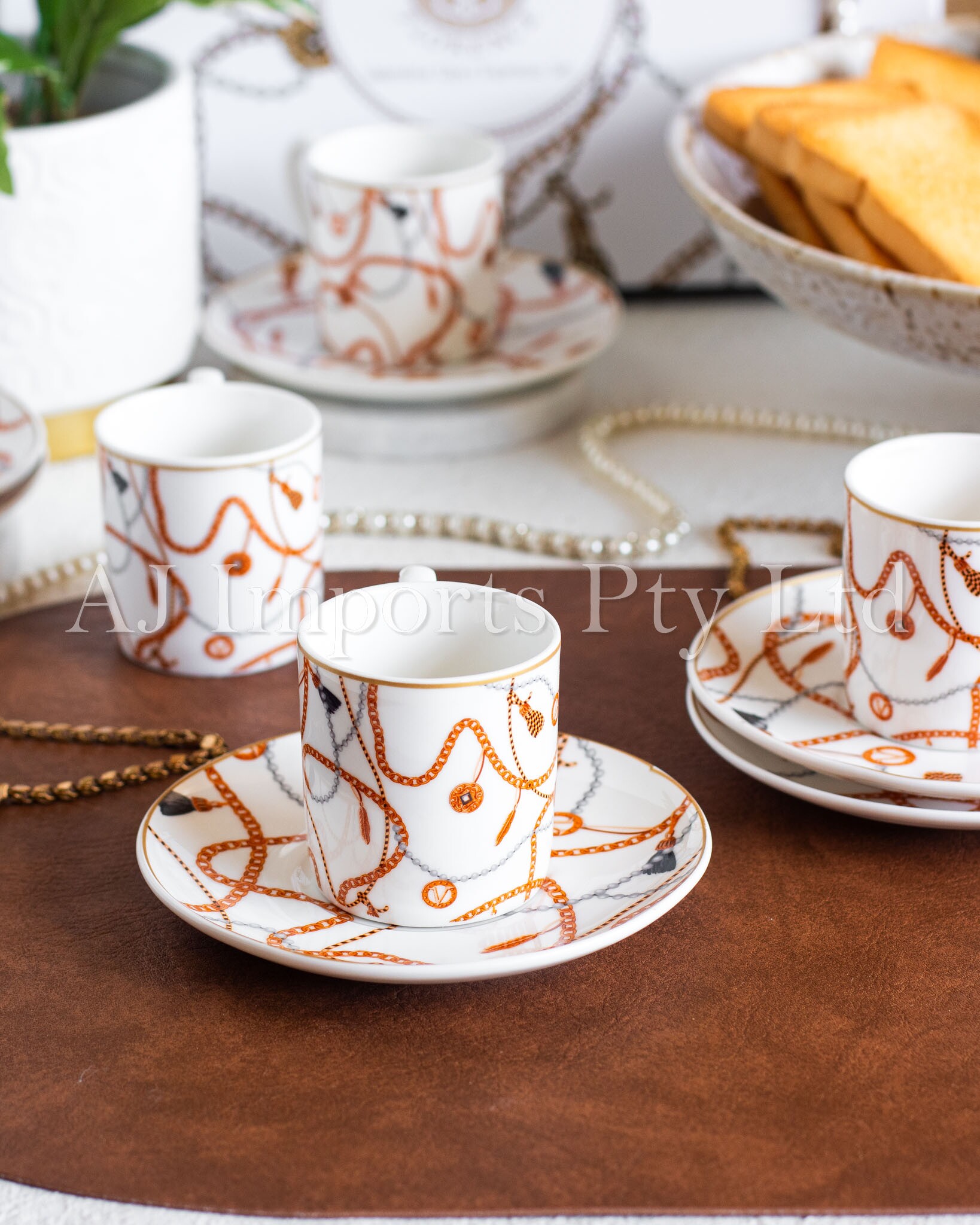 Introducing the exquisite Valentina Collection – an opulent fusion of designer elegance and timeless sophistication. Elevate your coffee experience with this set of 12 espresso cups and saucers, meticulously crafted to perfection and presented in a stunning matching gift box.