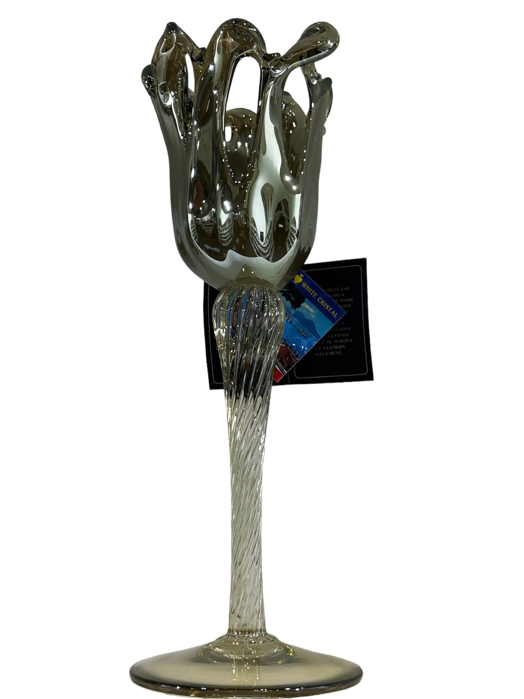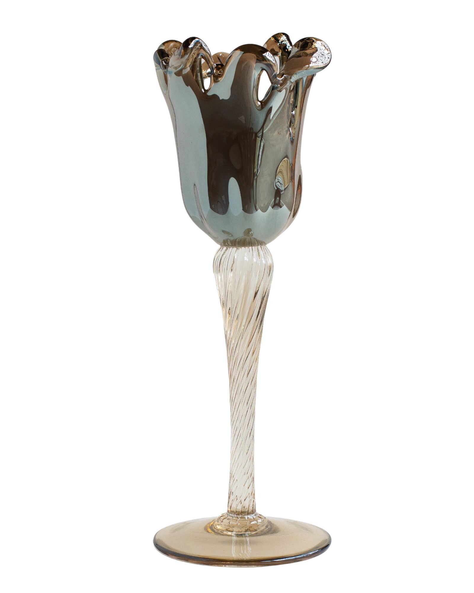 The House of Florence- Venezia Hand made Italian Glassware Candle Holder Grey