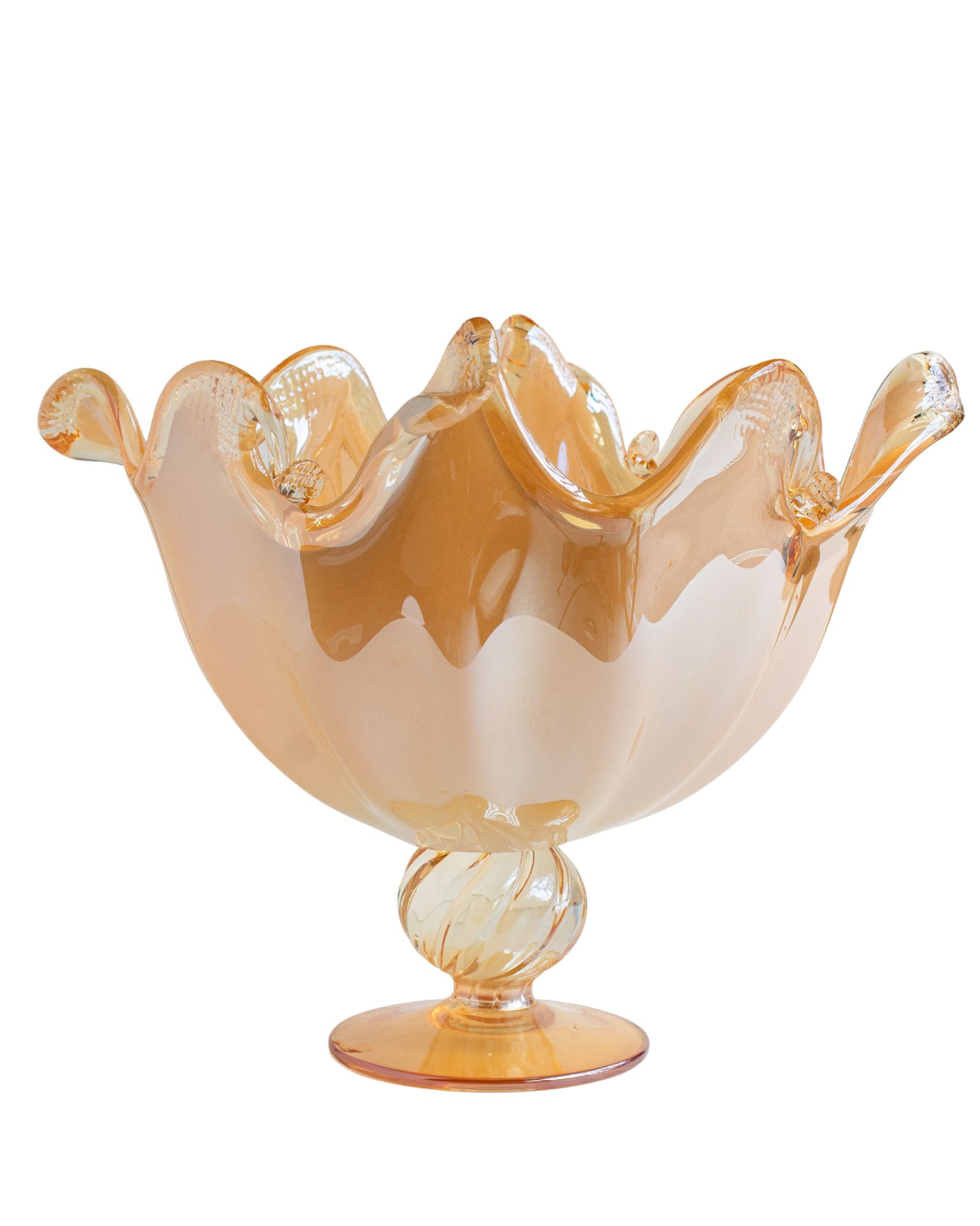 The House of Florence- Venezia Handmade Italian Glassware Large Fruit Bowl Honey