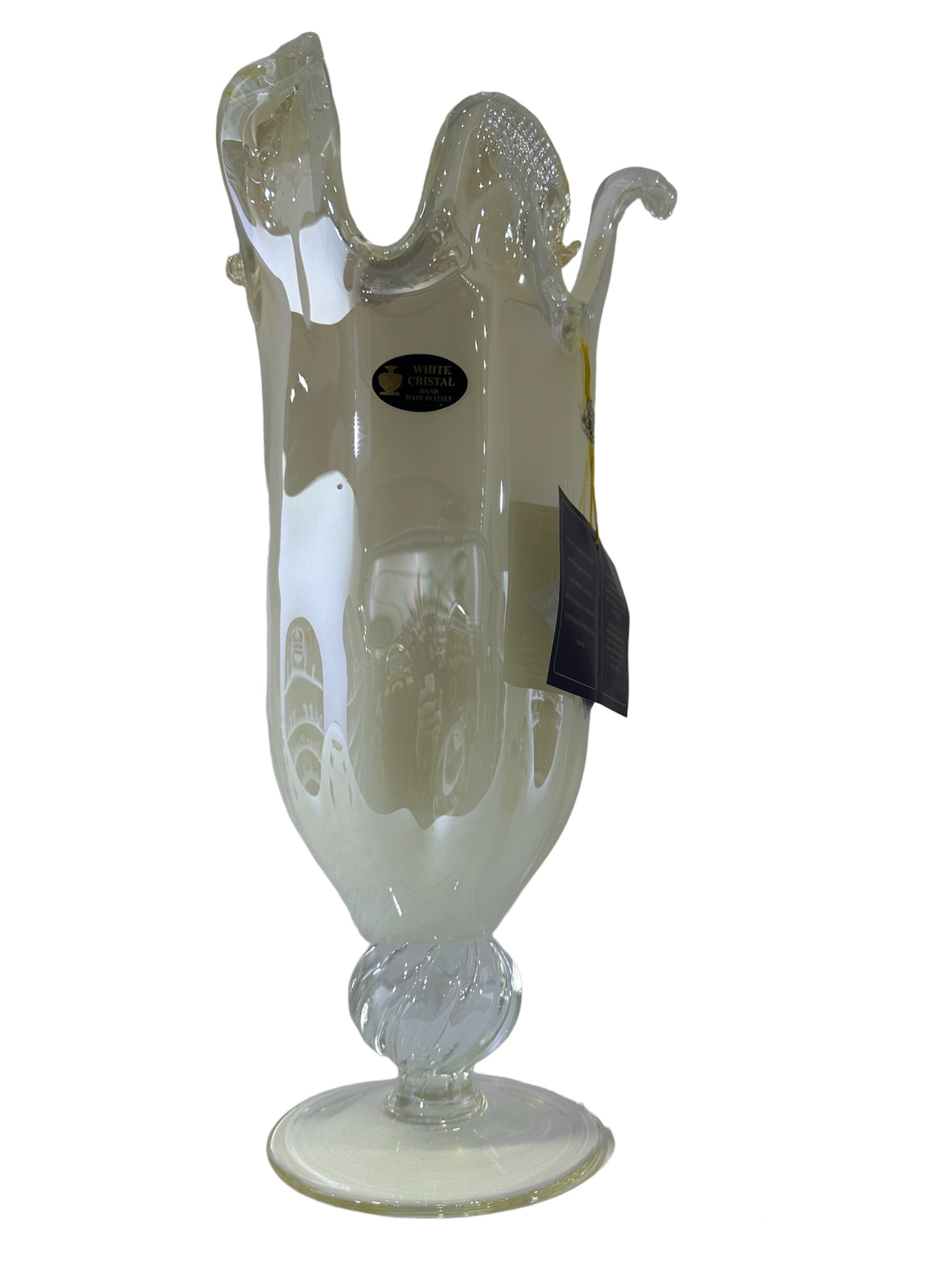 The House of Florence- Venezia Handmade Italian Glassware Large Vase Ivory