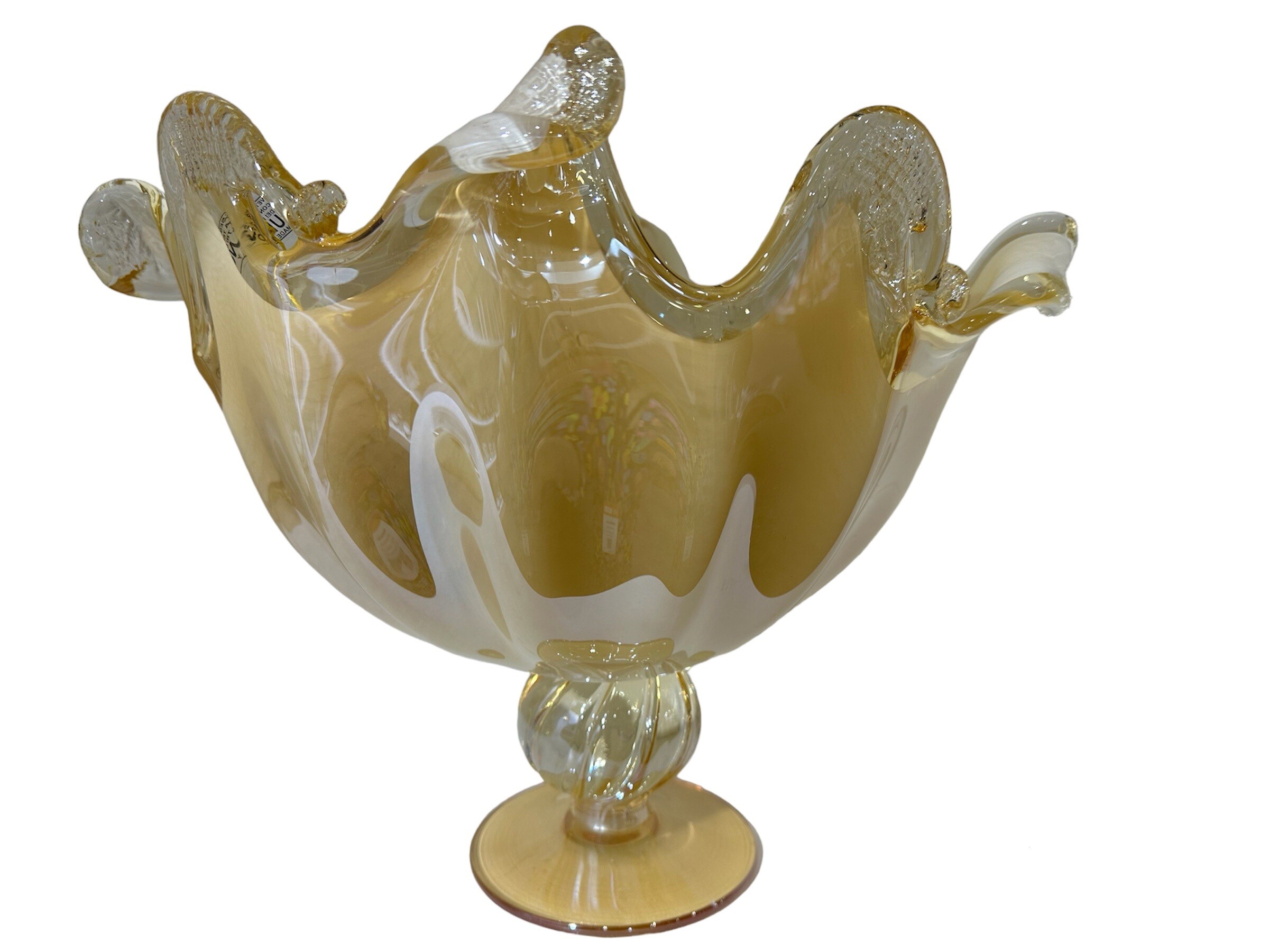 The House of Florence- Venezia Handmade Italian Glassware Medium Fruit Bowl Honey