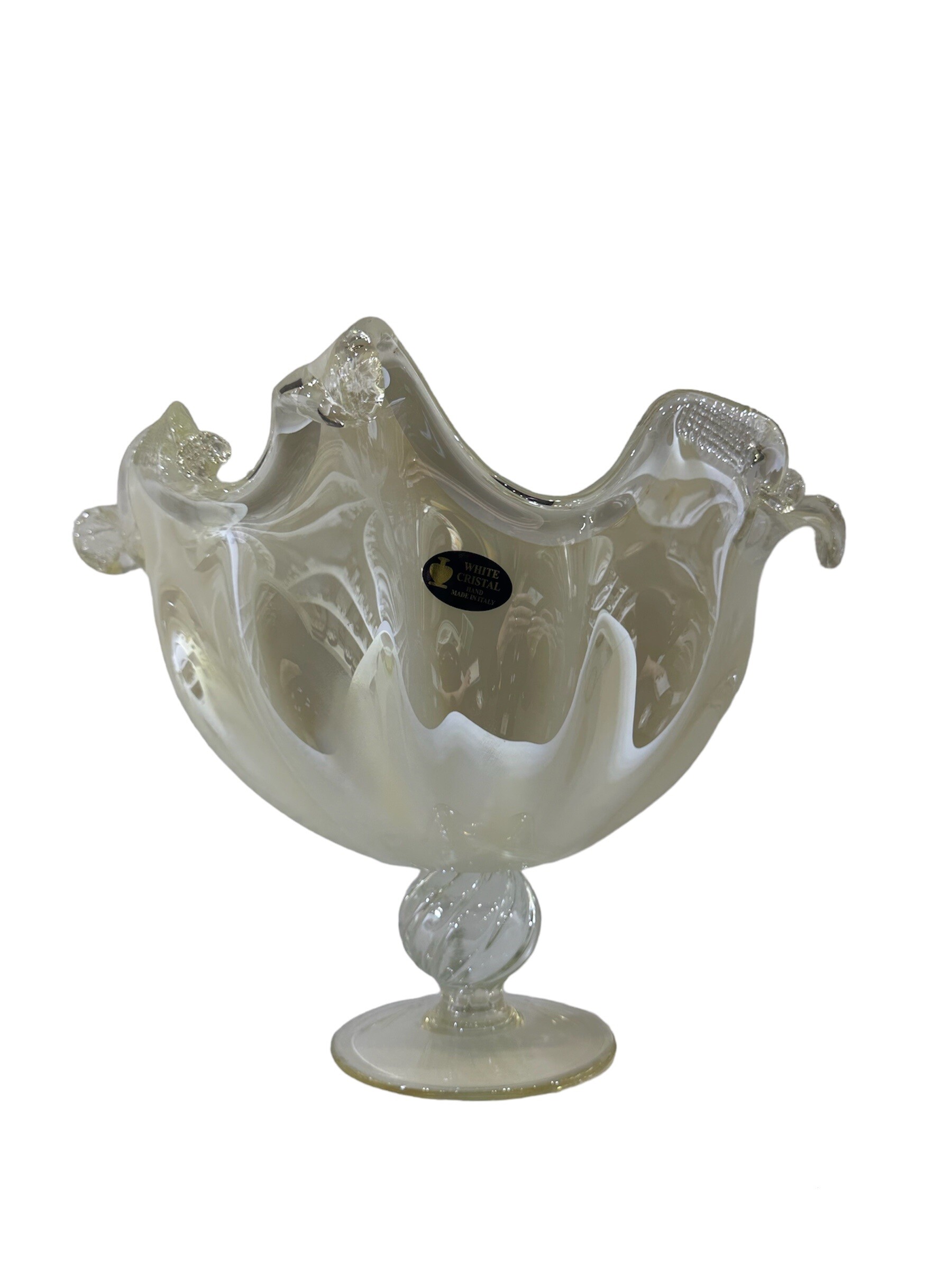 The House of Florence- Venezia Handmade Italian Glassware Medium Fruit Bowl Ivory