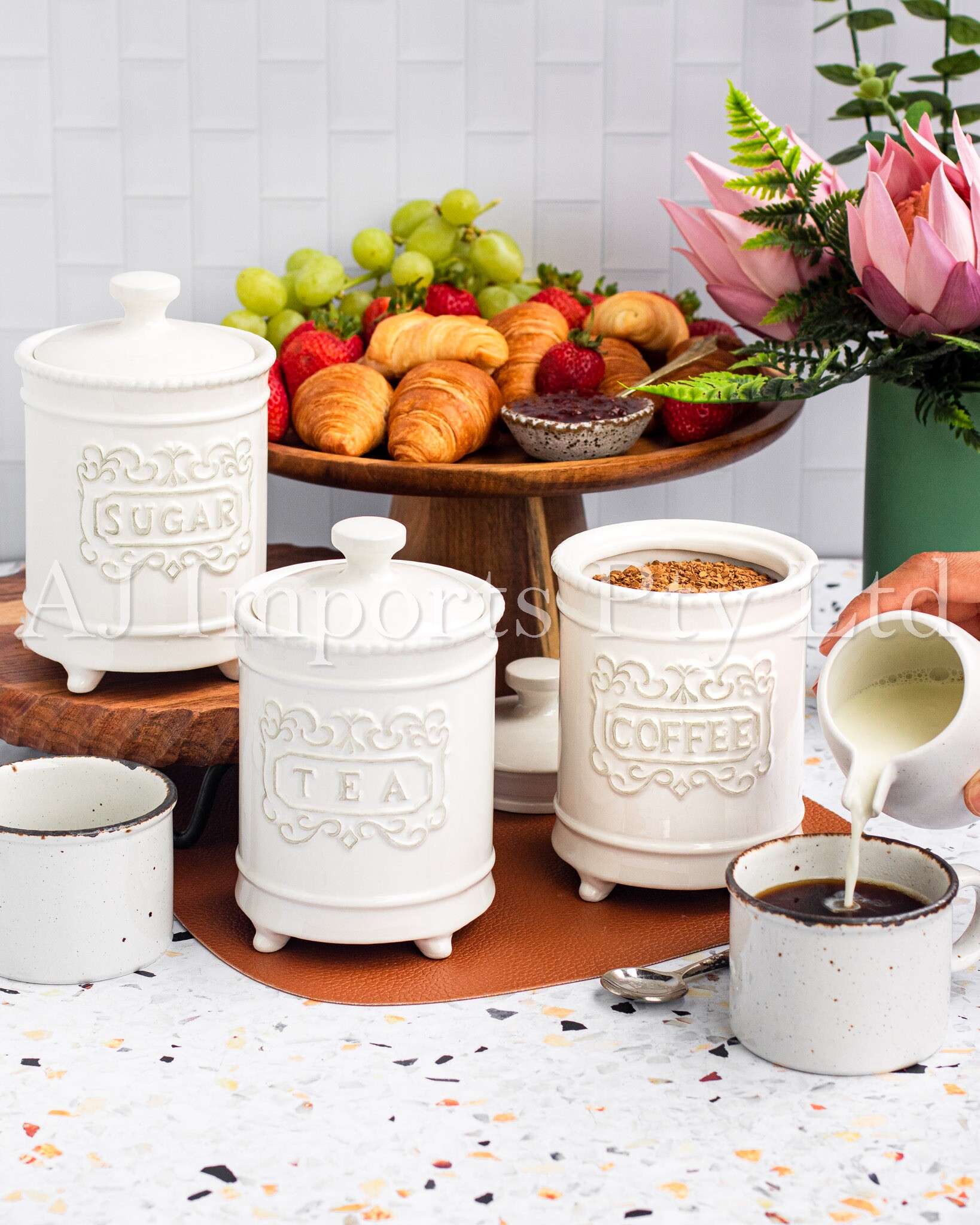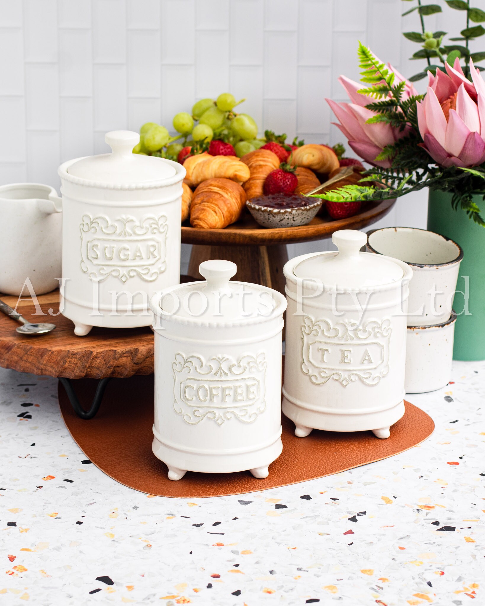 Whether displayed on your countertops or nestled neatly in your pantry, our Provincial French Design Set of 3 Storage Canisters is sure to evoke a sense of timeless elegance and sophistication in your home.