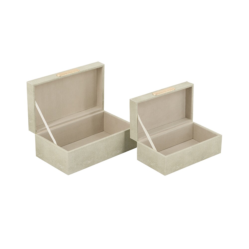 Vintage Decorative Grey Storage Box -Set of 2 with Gold Detailing | Elegant Home Decor, Shelf, or Office – Classic, Timeless Design