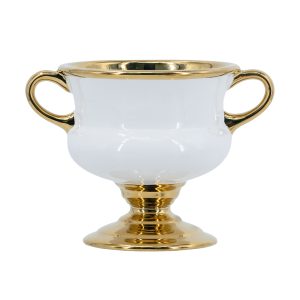 Looking to elevate your interior décor? The Luxurious White and Gold Ceramic Flower Planter Vase is more than a vase — it’s a statement piece. With its grand pedestal shape, dual-handled design, and radiant gold detailing, this large ceramic vase adds timeless elegance and visual drama to any room.